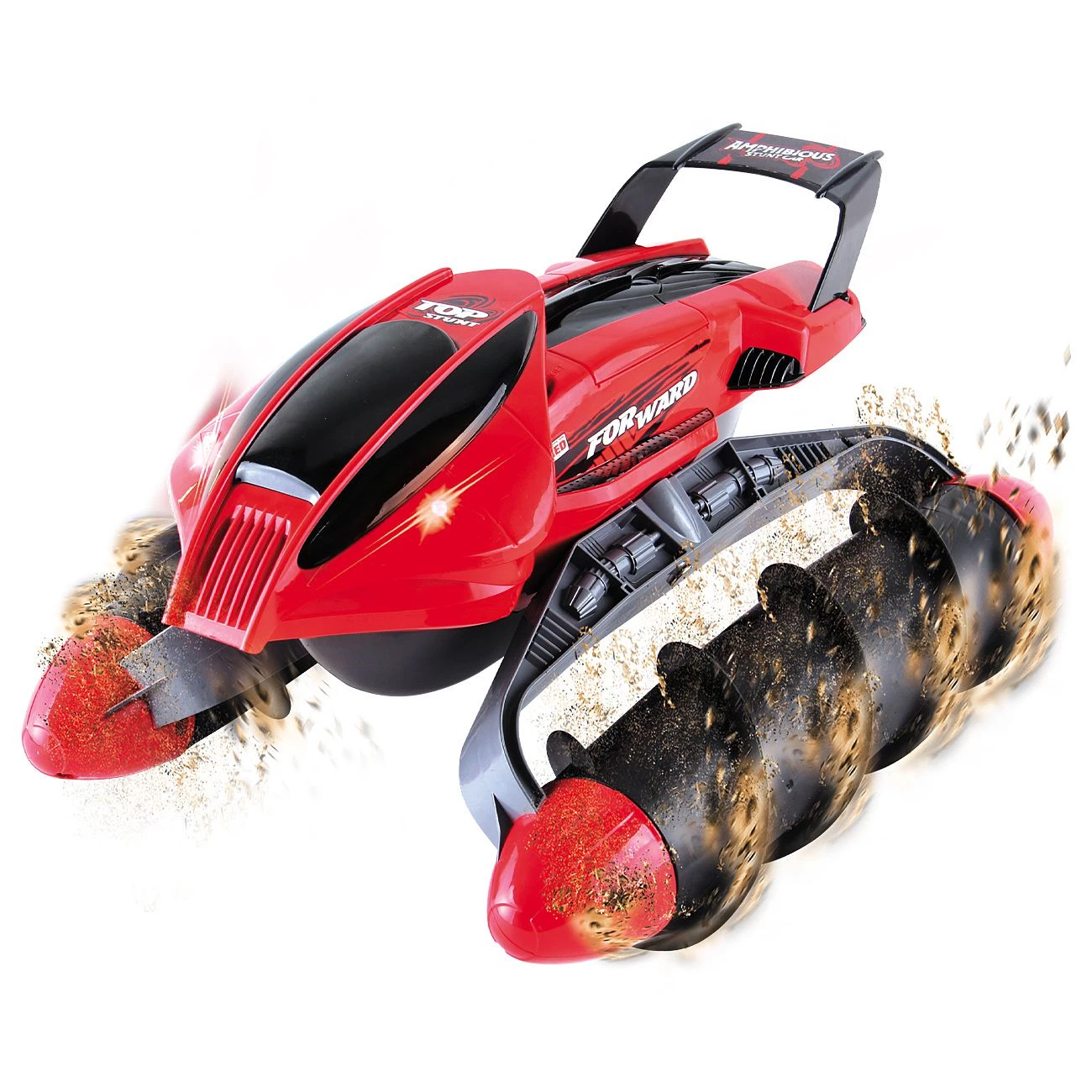 Amfibija na daljinsko upravljanje Dimenzije: 51 x 26 x 30 cm Funkcije: naprej, nazaj, levo, desno, postrani Možnost vožnje na zemlji, travi, vodi in snegu. Domet daljinske kontrole 50 m. Potrebujete baterije 2 x 1.5V