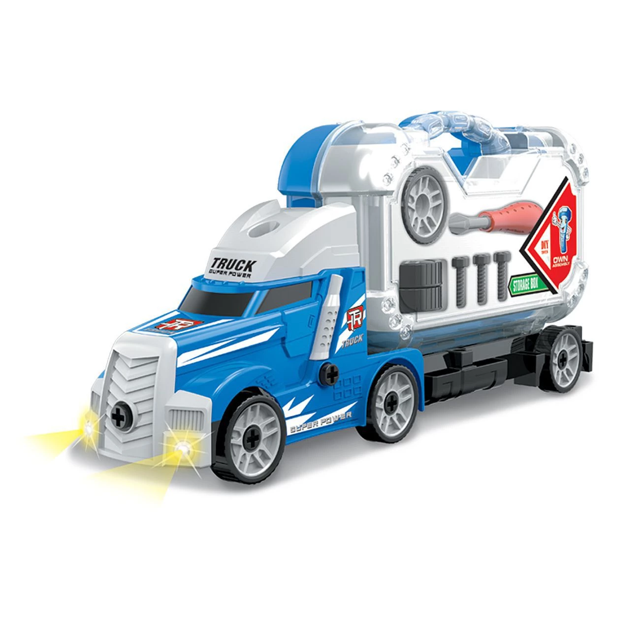 Kamion baterijski z raznimi svetlobnimi in zvočnimi efekti. Na voljo v dveh barvah. Dimenzija: 43,5 x 10 x 22,5 cm. Za delovanje so potrebne 3xAG13 baterije -priložene.