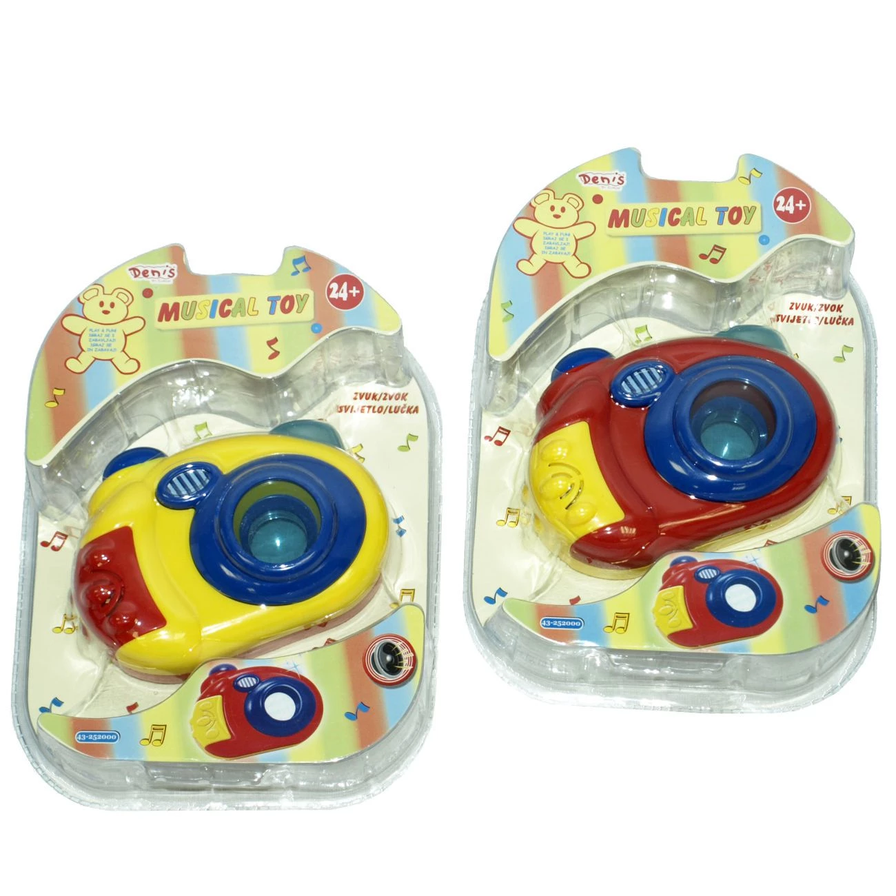 Fotoaparat vsebuje bliskavico, lečo, kalejdoskopski gumb in zvočne efekte. Potrebujete 2 bateriji tipa AG13, ki sta priloženi. Namenjeno otrokom od 24 mesecev dalje.