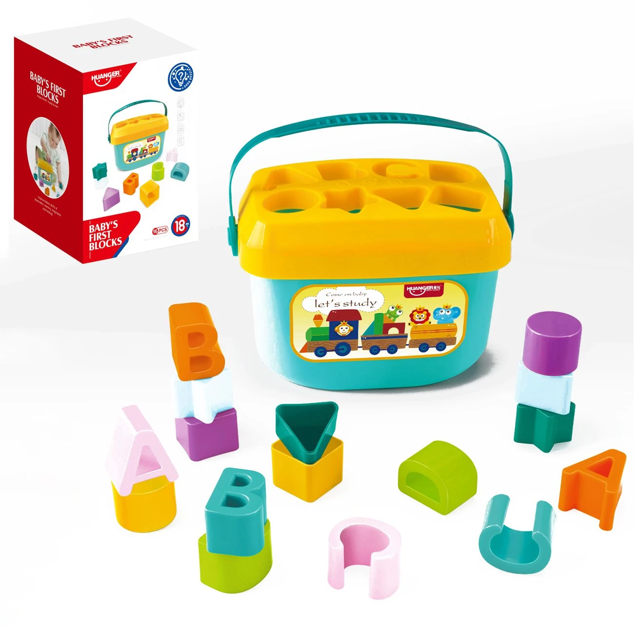 Vedro z liki vsebuje kocke različnih oblik in velikosti. Na vrhu vedra je pokrov z odprtinami, skozi katere se vstavlja kocke. Didaktična igra razvija otrokov kognitivni razvoj, krepi koordinacijo roke in oči, ter spodbuja k razvoju finomotorike.V setu je vedro s pokrovom in 16 likov. Dimenzije: 14x14x20.8 Primerno za otroke od 18 mesecev dalje.