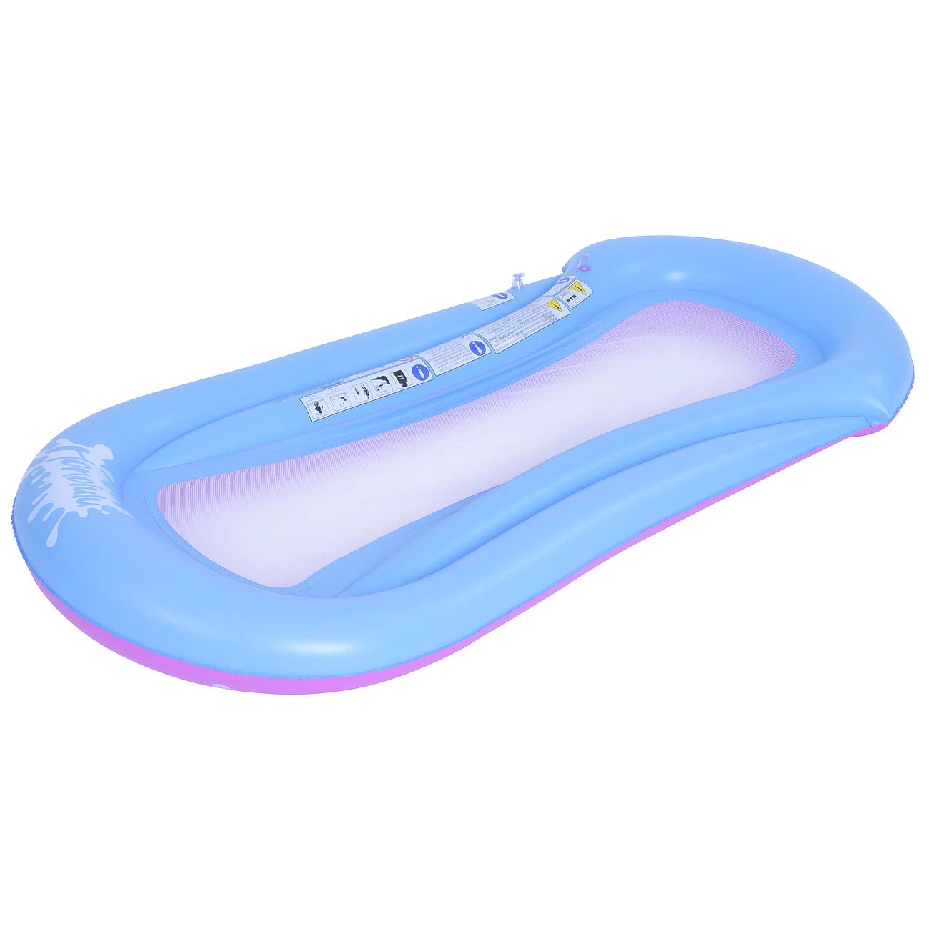 Zračna blazina z mrežo 180x100 cm za napihovanje (dve zračni komori), z nosilnostjo do 80 kg. Priložen set za popravilo manjših poškodb.