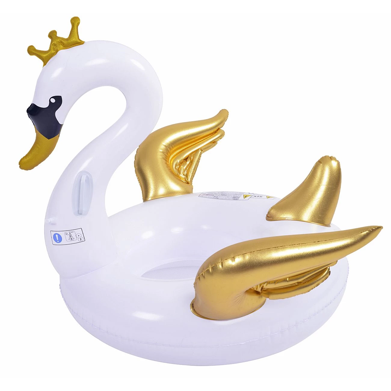 Zračna blazina, dim. 115 cm, v obliki laboda. 2 zračni komori. 2 čvrsti zunanji ročki za držanje. Mrežasto dno. Priložen obliž za manjše poškodbe.