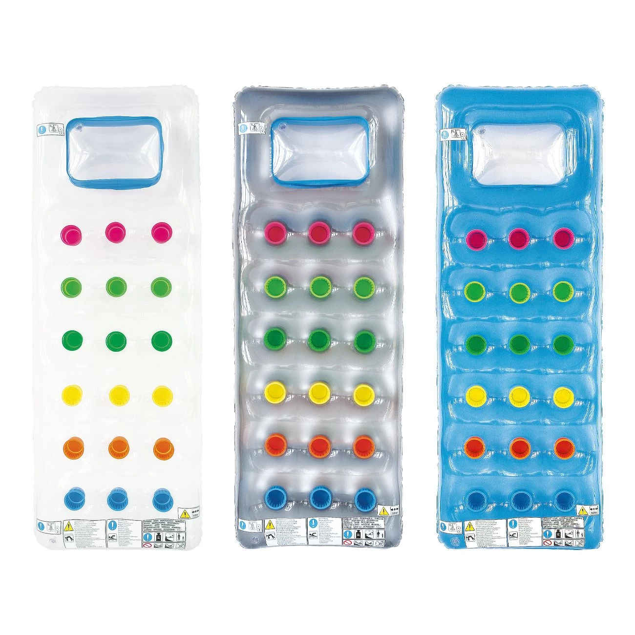 Blazina dim. 190x70cm, 3 vrste. Največja dovoljena teža je 80 kg. Povišan vzglavnik. 2 zračni komori. Material:vinil.