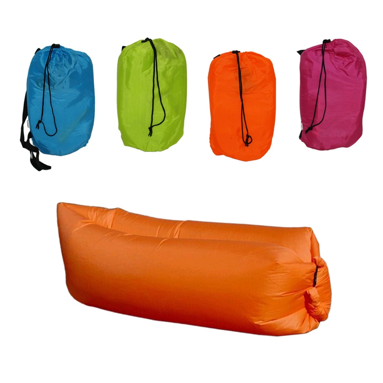 Fotelj-ležalnik za napihnit, 185 x 75 x 50 cm. Napolnite ležalnik z zrakom samo v par sekundah in uživajte na plaži, v morju ali na vrtu. Nosilnost do 250 kg. Izdelano iz poliestra (210T). V praktični vreči za shranjevane in transport. Na voljo v modri, zeleni in oranžni barvi.