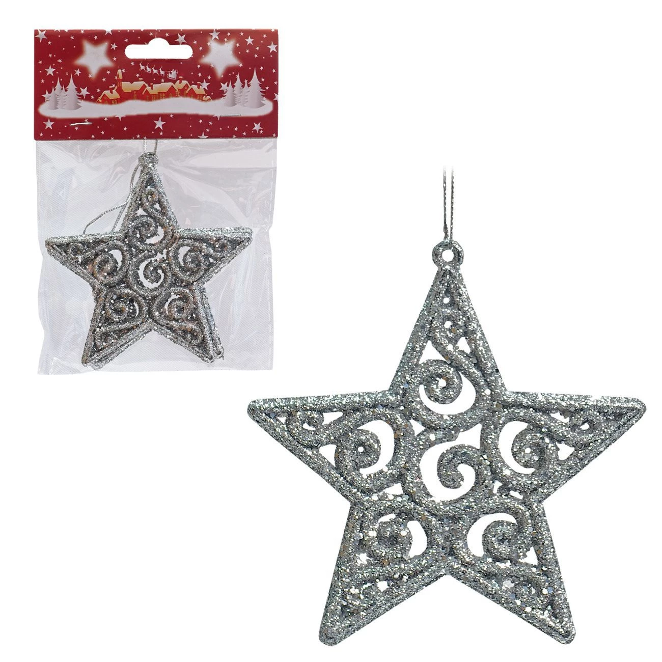 Božična zvezda, 10 cm, srebrne barve. Set vsebuje 2 snežinki.