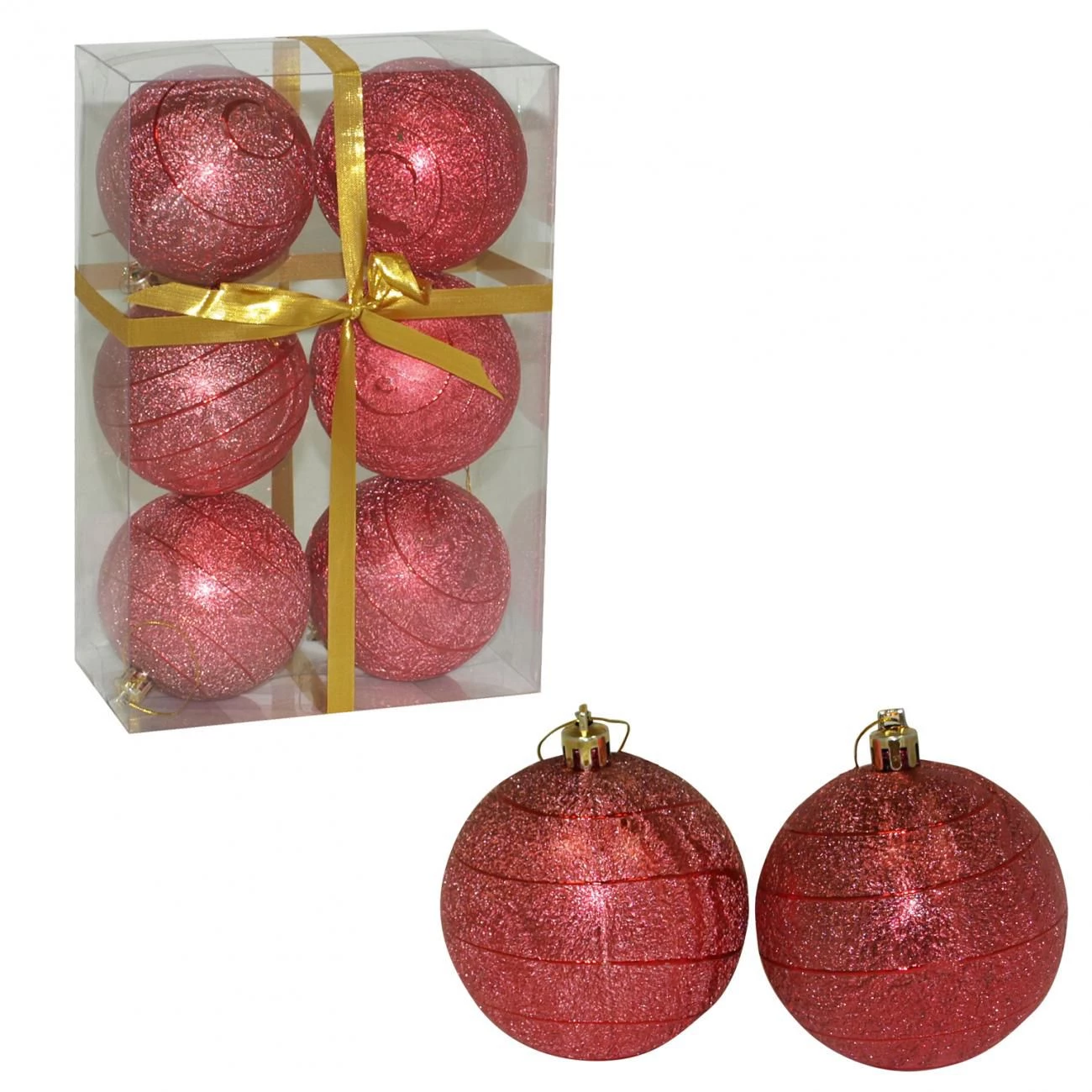 Kroglice rdeče novoletne premera 8cm. V setu 6 kos. Material plastika.