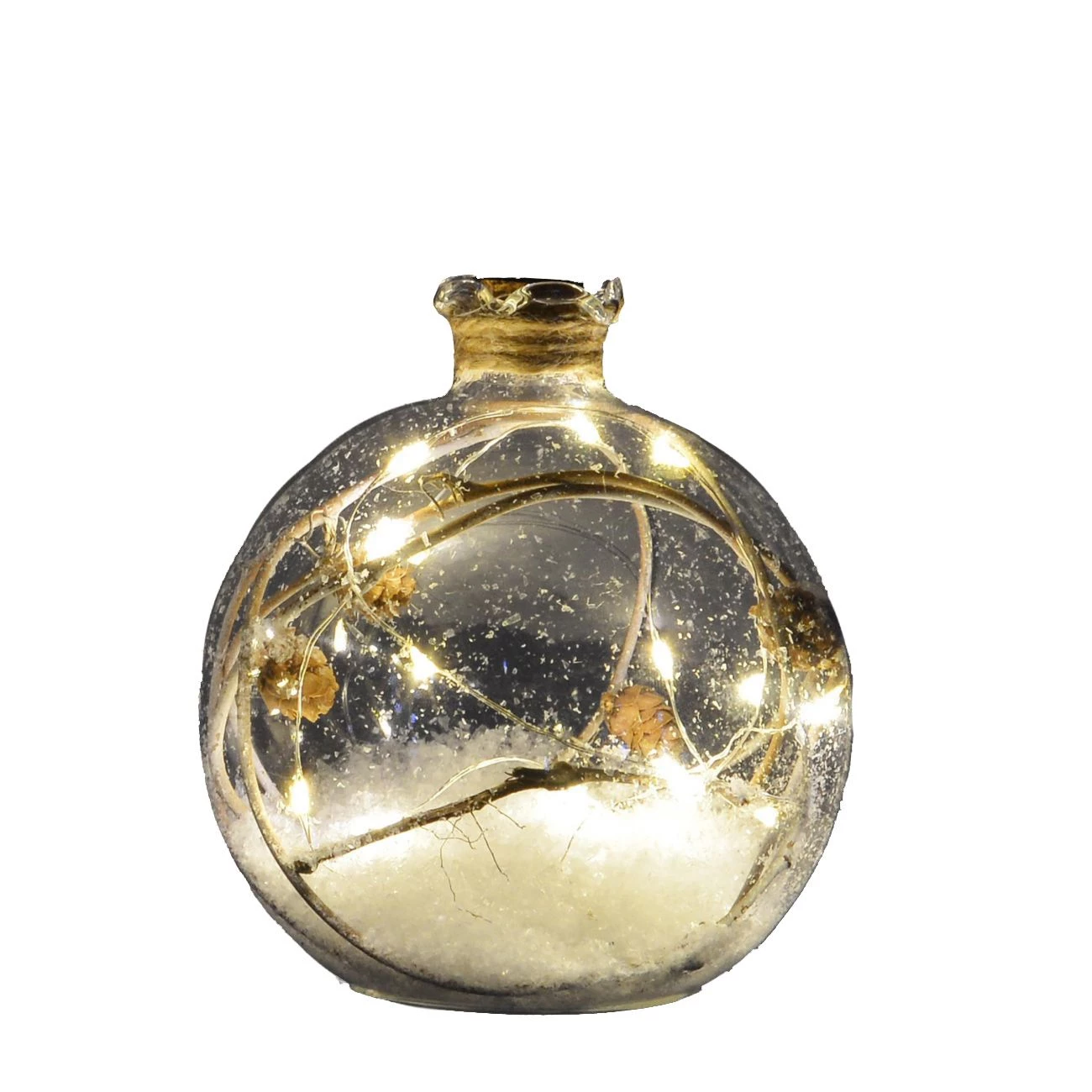 Svetleča krogla premera 12cm, 8 mini LED žarnic, Stalna bela svetloba. Deluje na baterije 2x CR2032 - priložena - priložena