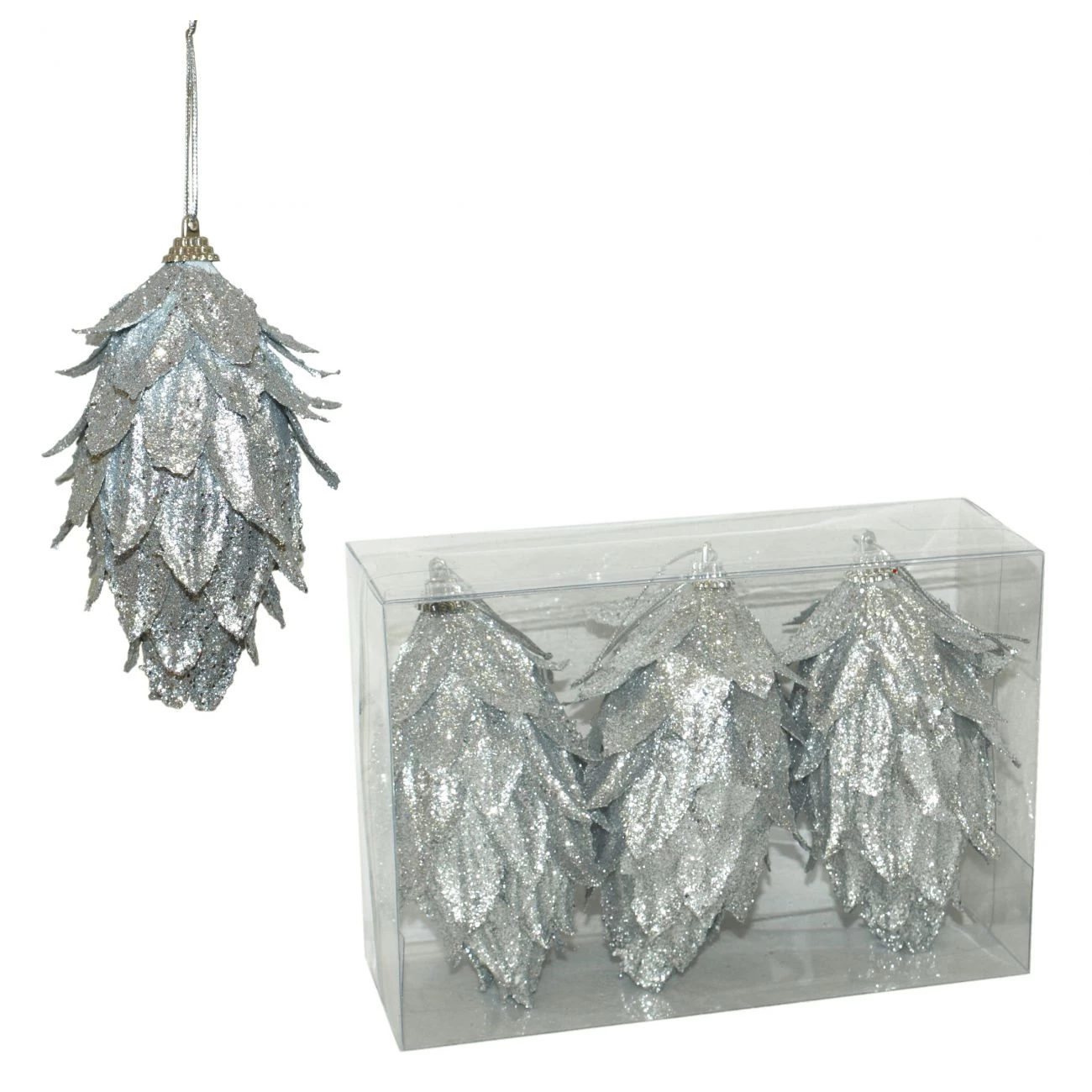 Božično novoletni okrasni storži 10cm srebrni. Narejeni iz stiropora. V setu 3 kos.