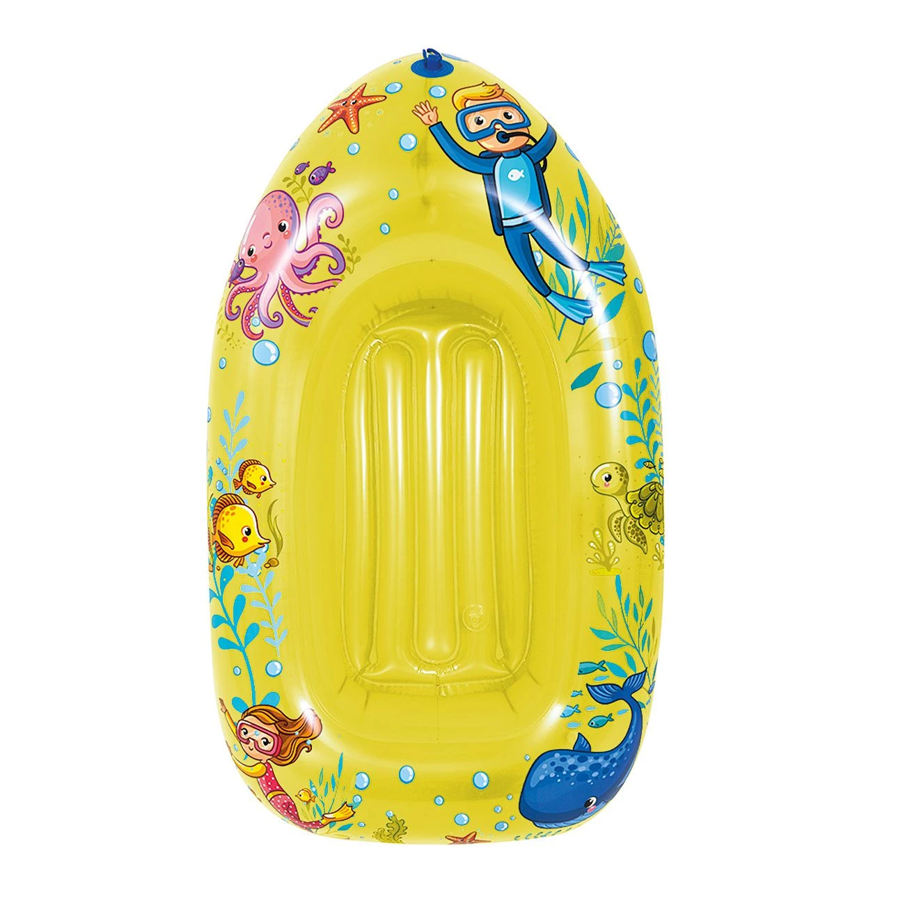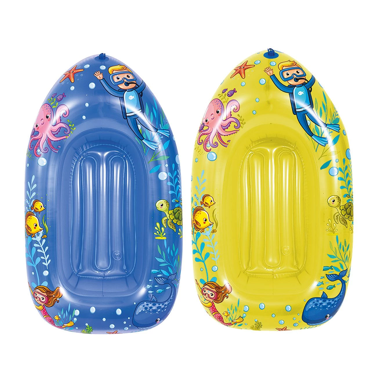 Napihljivi čoln dim 112 x 70 cm, Predvidena starost za otroke 3-6 let, teže do 30 kg. Dno je napihljivo-večja udobnost. Dve barvni kombinaciji.