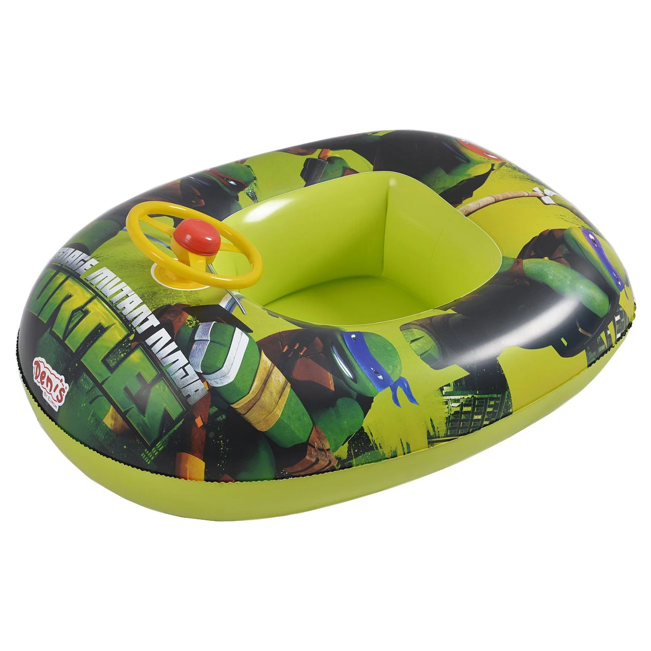 Čoln, dim. 67,5x50 cm, poslikan z motivom Ninja želve. Primerno za otroke 1-2 leti, teže do 15 kg. Dno ni napihljivo. Vsebuje volan z trobljo.