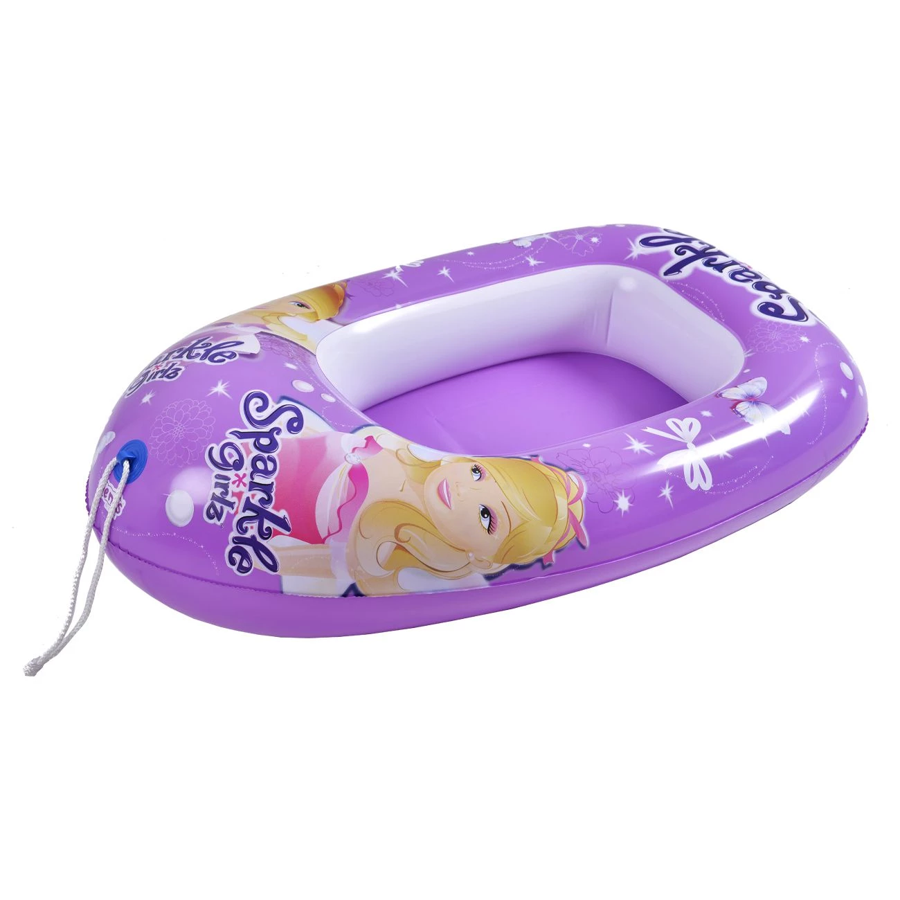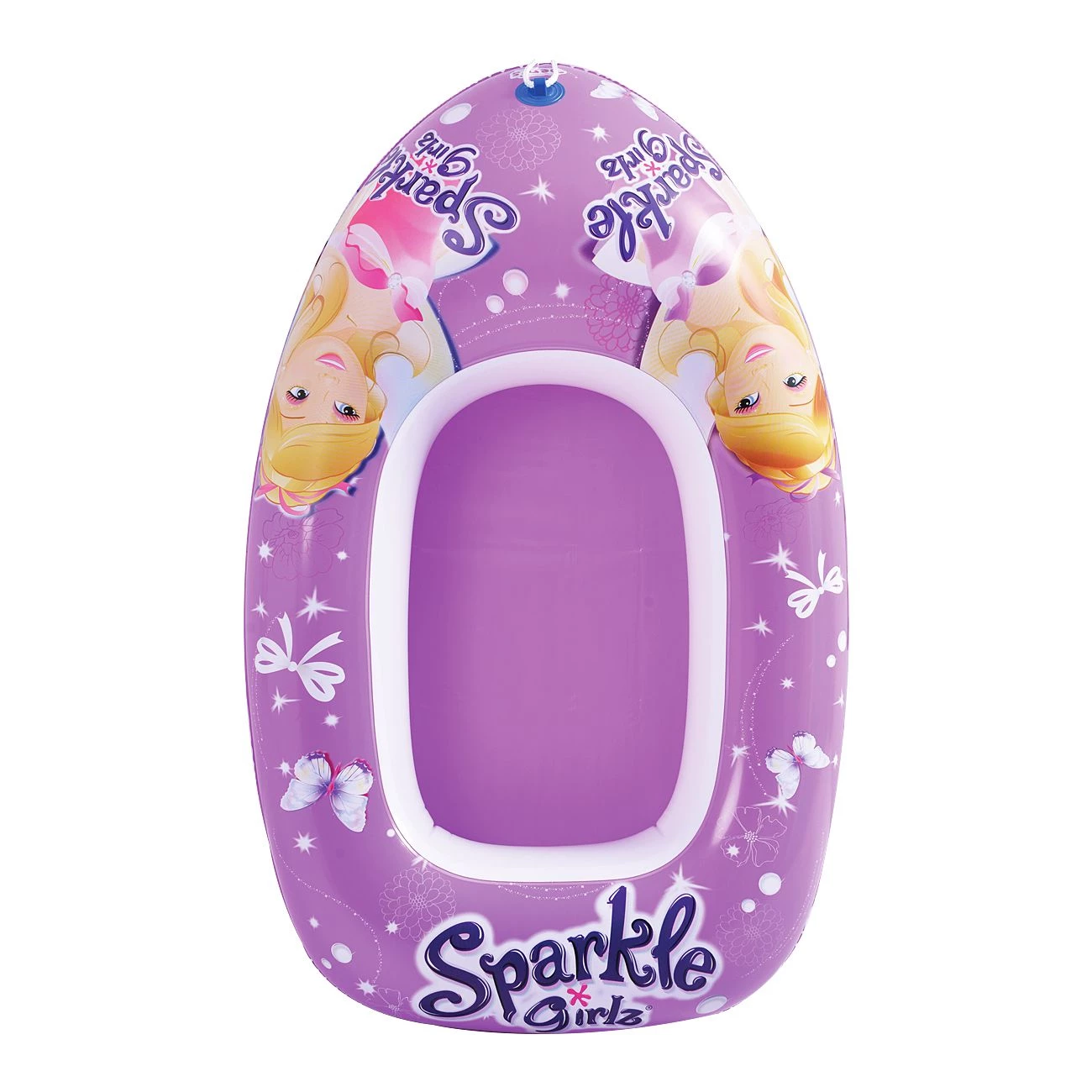 Čoln, dim. 112x70 cm, poslikan z motivom Sparkle Girls, Predvidena starost za otroke 3-6 let, teže do 30 kg. Dno ni napihljivo. Vsebuje vrv za vlečenje.