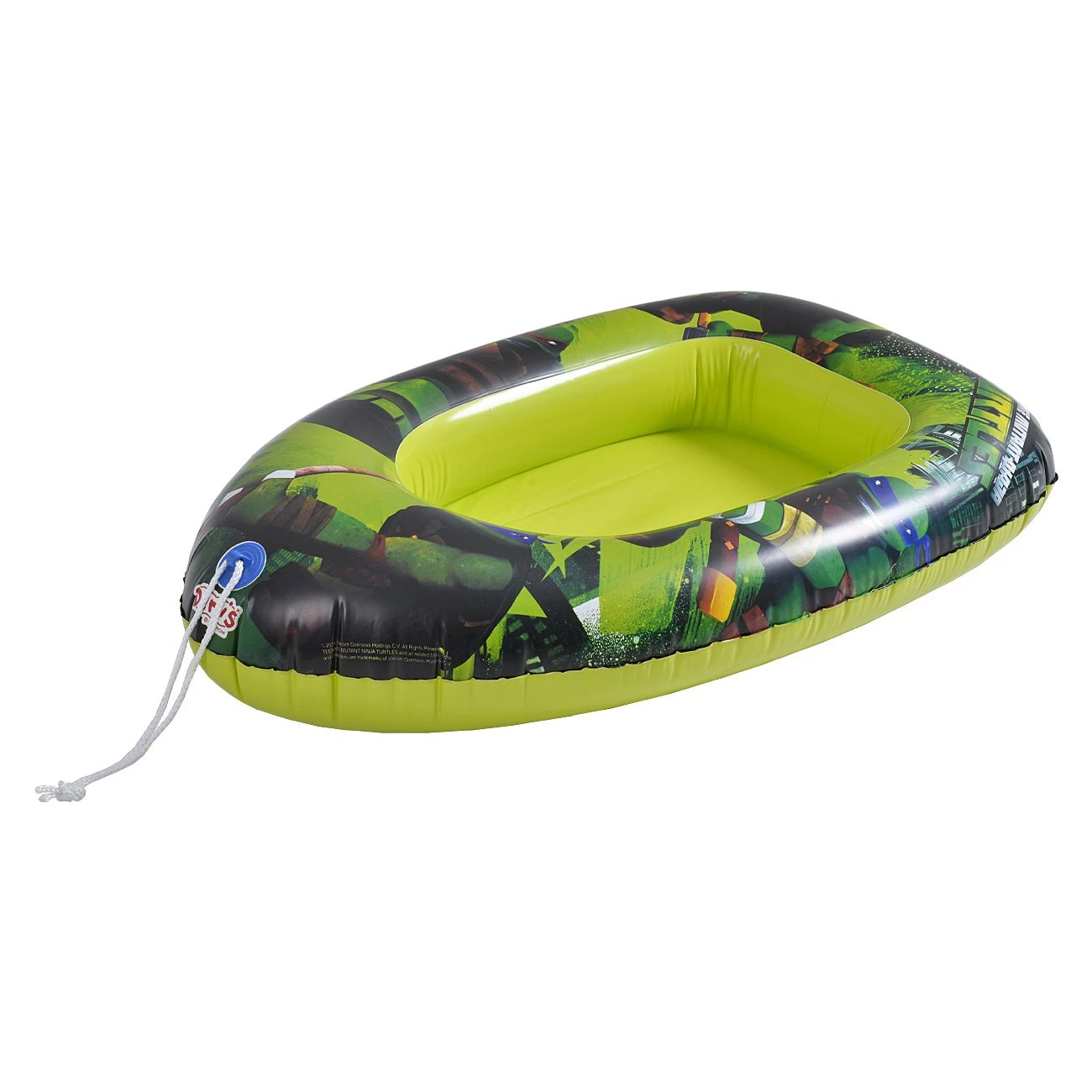 Čoln dim. 112x70 cm, poslikan z motivom Ninja želve, Predvidena starost za otroke 3-6 let, teže do 30 kg. Dno ni napihljivo. Vsebuje vrv za vlečenje.