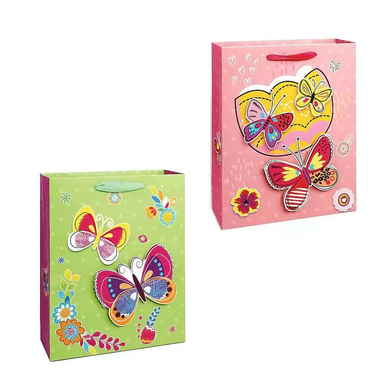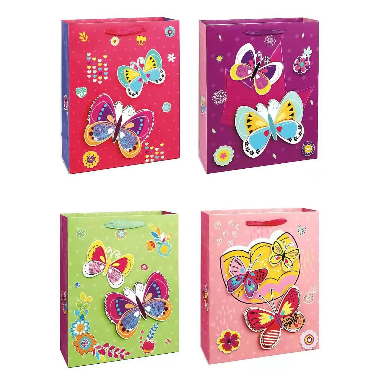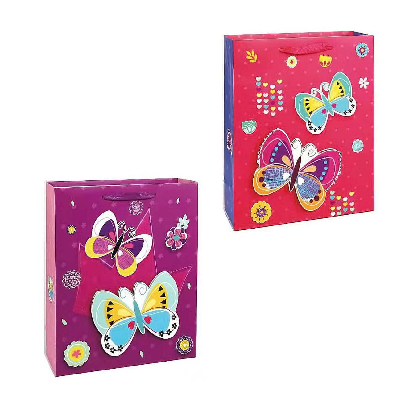 Darilna vrečka 3D Glitter 24 x 18 x 8 cm Motiv prelepih metuljev 4 različni dizajni
