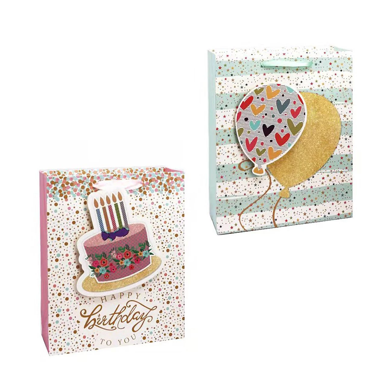 Darilna vrečka 3D Glitter Rojstnodnevni motivi Velikost vrečke: 32 x 26 x 10cm 8 različnih motivov
