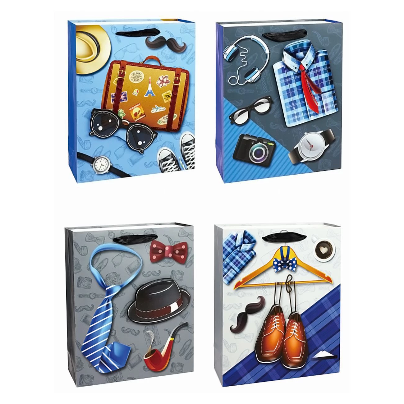 Darilna vrečka, moški motivi Velikost vrečke: 32 x 26 x 10 cm. Na voljo 4 različni motivi