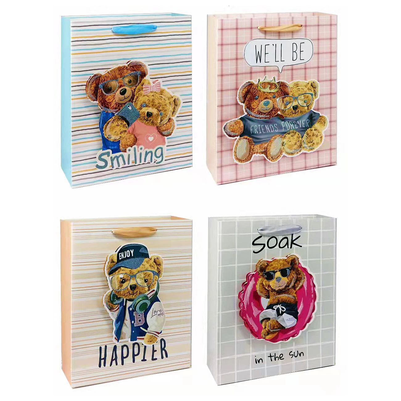 Darilna vrečka 3D Glitter 32 x 26 x 10 cm Motiv simpatičnih medvedkov 4 različni dizajni