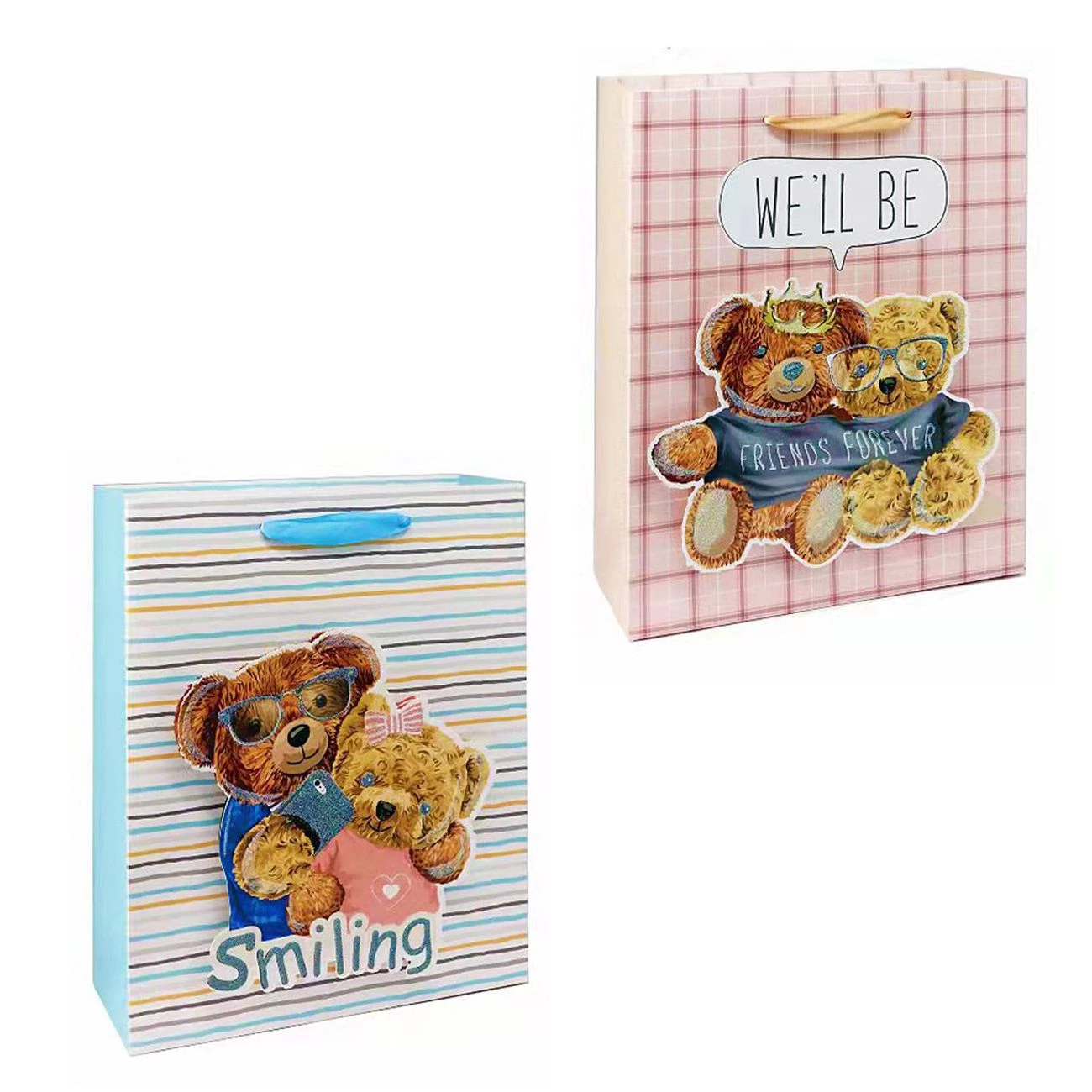 Darilna vrečka 3D Glitter 40 x 30 x 12 cm Motiv simpatičnih medvedkov 4 različni dizajni