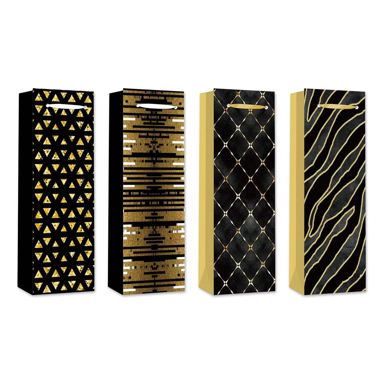 Darilna vrečka za vino , črno - zlat motiv Velikost vrečke: 36 x 13 x 8 cm 4 različni dizajni