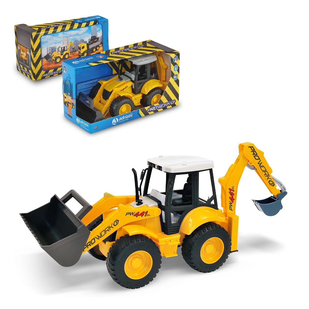 Bager 24x42(55)x18 cm. Dobra kopija pravega bagerja - New Holland B115B. Izdelan iz čvrste plastike. Ima dvižen prednji in zadnji del. Primerno za otroke stare 3 leta in več.