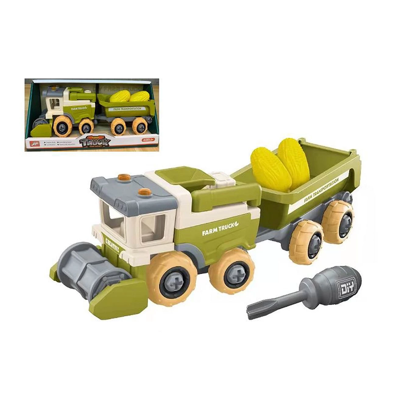 Kombajn s prikolico Vsebina kompleta: kombajn, prikolica,žito in izvijač. Igrača izboljšuje fino motoriko in koordinacijo oči in rok. Narejeno iz kvalitetne plastike. Primerno za otroke od 3 let dalje.