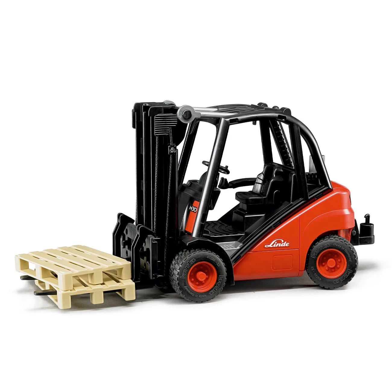 Viličar Linnde H30D je narejen iz kvalitetne plastike v velikosti 1:16 . Viličar Linde s paletami ima drog v dveh dimenzijah, ki se lahko premikajo navzgor in navzdol, ter hkrati naprej in nazaj.Tudi palete so kot resnične. Igra je tako še bolj zabavna! Primerno za otroke od 3 let dalje.