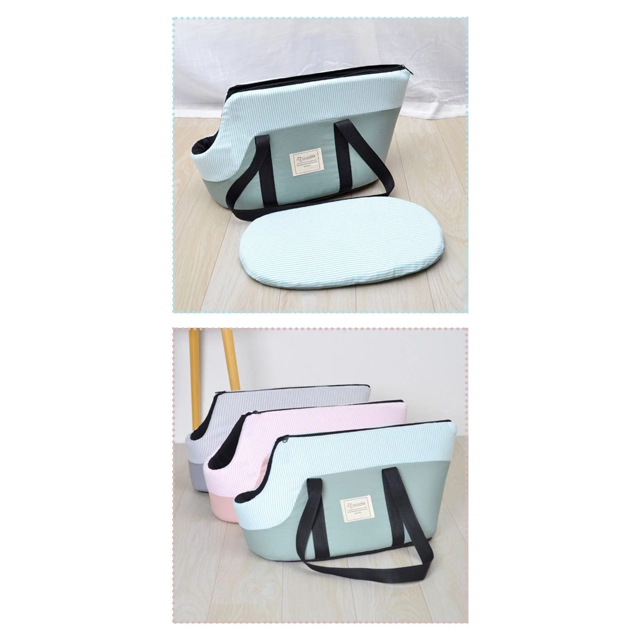 Torba za transport ljubljenčka Narejena iz bombaža. Namenjena za ljubljenčke maksimalne teže 5 kg. Velikost: 42 x 25 x 25 cm. Na voljo v treh barvah: roza, zelena svetla in siva.