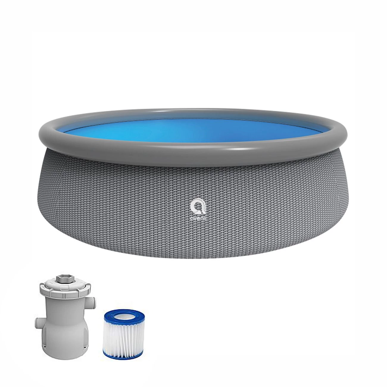 Samostoječi bazen imitacija ratana. Dimenzije: 396x84 cm. Kapaciteta vode: 9481 l. Zgornji rob se napihne - večja stabilnost in obstoj okrogle oblike. Vključuje filter s črpalko.