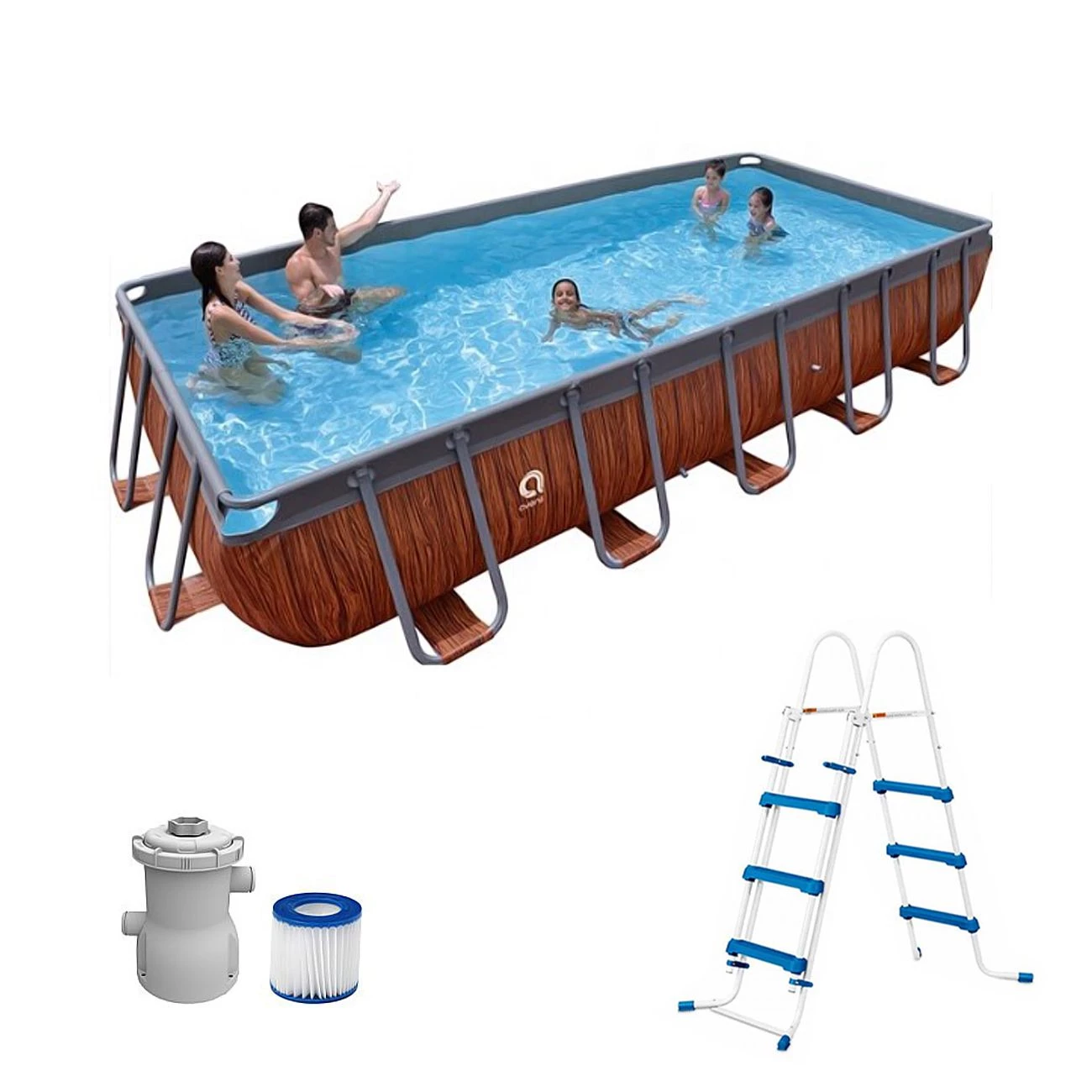 Bazen v imitaciji Ratana velikosti 540x250x100cm. V kompletu tudi filter in črpalka kapacitete (800Gal/H 3028L/H) Čas postavitve bazena cca 30 min. (navodila so priložena) Kovinska nosilna konstrukcija. Vsebuje set za manjša popravila.