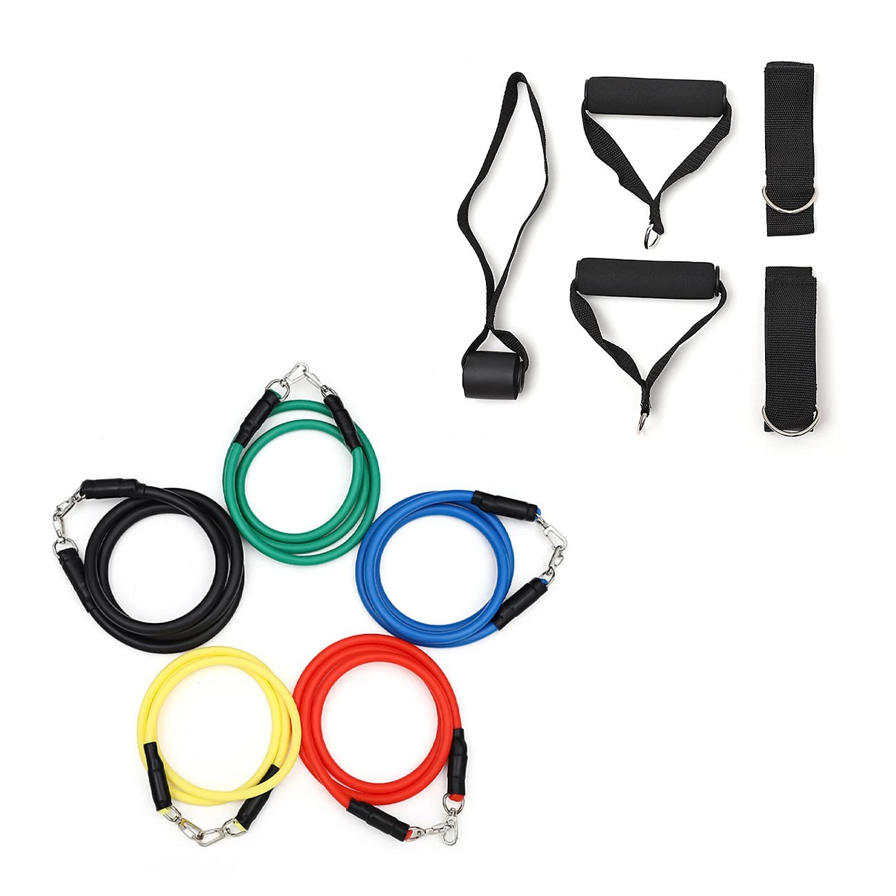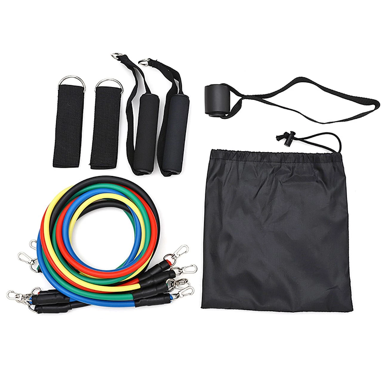 Set elastičnih trakov. Izdelano iz kvaliteten gume. V setu so različne elastike, dolžine 1,2 m, ter dodatki potrebni za vadbo. Jakosti trakov so: 5 kg, 7 kg, 9 kg, 11 kg in 13 kg.