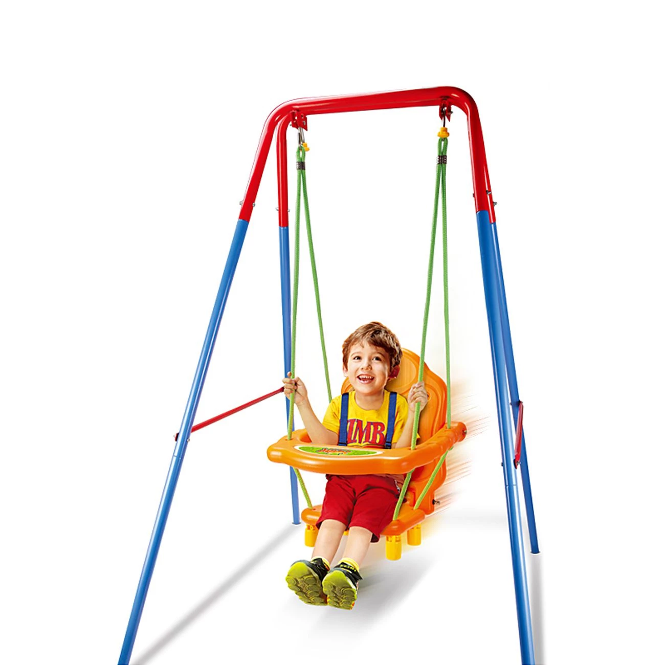 Kovinska konstrukcija s plastričnim sedežem in varnostnim pasom. Dimenzije: 131 x 104 x 92 cm. Primerno za otroke od 12 mesecev do predvidoma 3 let. Največja dovoljena teža je 25 kg.