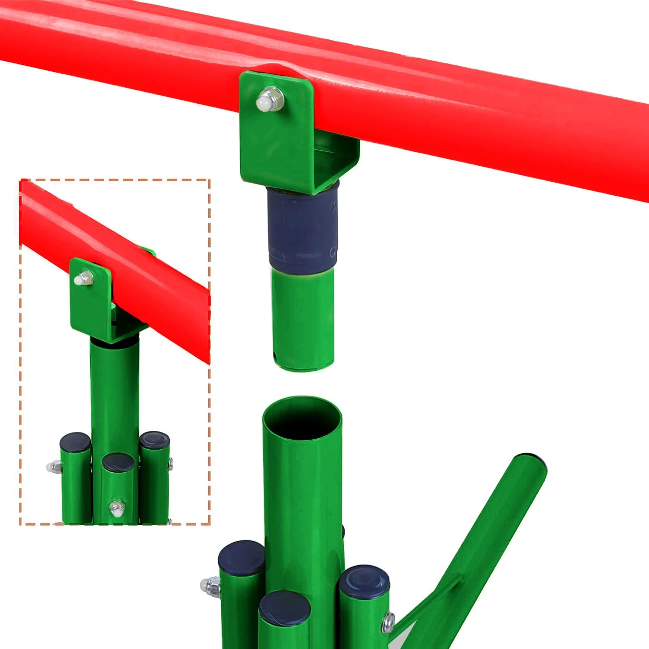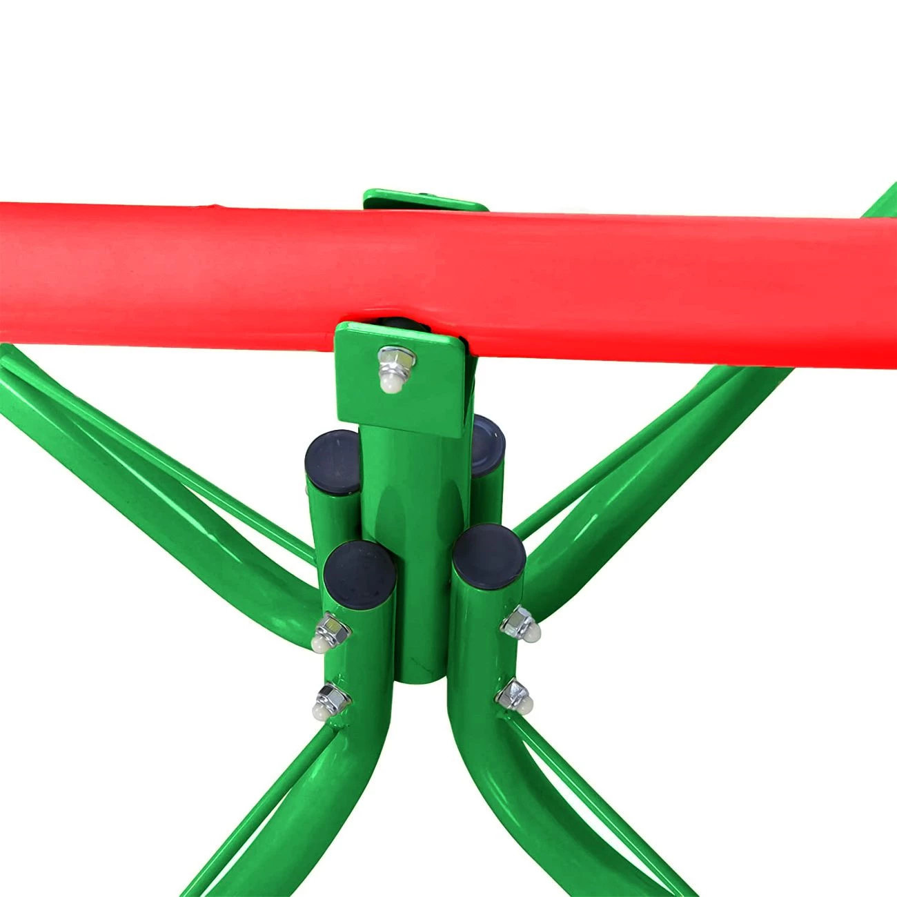 Gugalnica dim 63 x200 x 100 cm. Kovinska konstrukcija, plastični sedeži. Namenjeno otrokom, starim od 3 do 10 let, skupna teža do 70kg. Zasuka se okoli osrednje podpore za 360 stopinj.