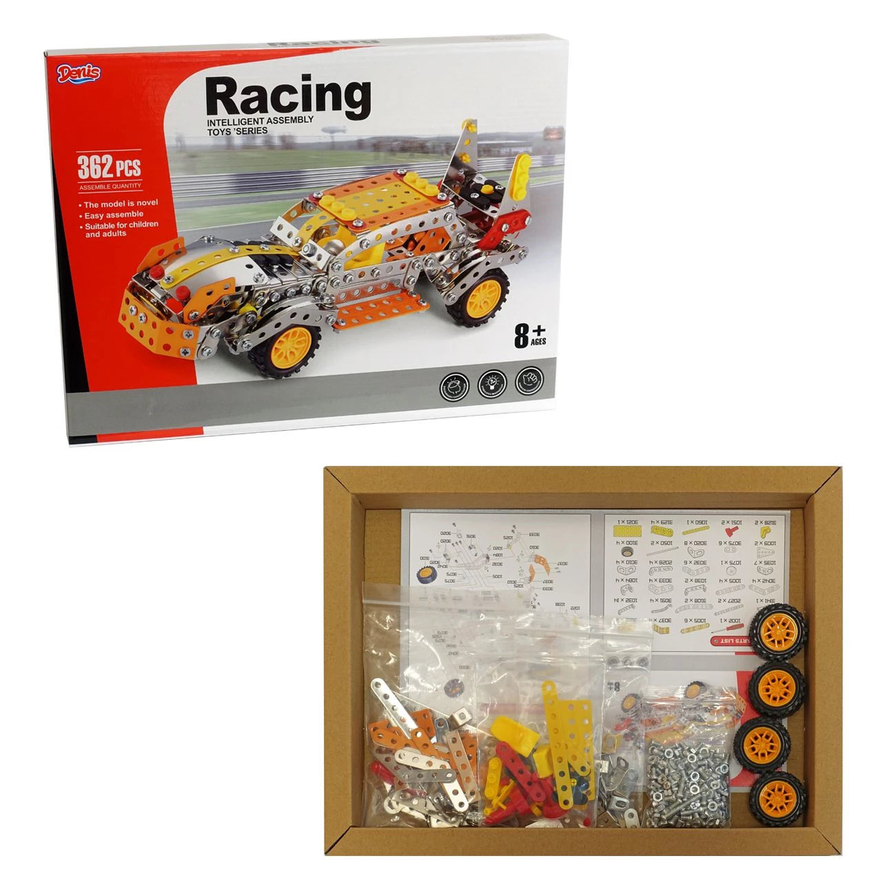 Kreativni set - Dirkalni avto. Set sestavlja 362 različnih kovinskih in plastičnih delov. Priloženo potrebno orodje in navodila za sestavljanje. Odlična aktivnost za vajo kreativnosti, spretnosti in opazovanja. Primerno za otroke stare 8 let in več.