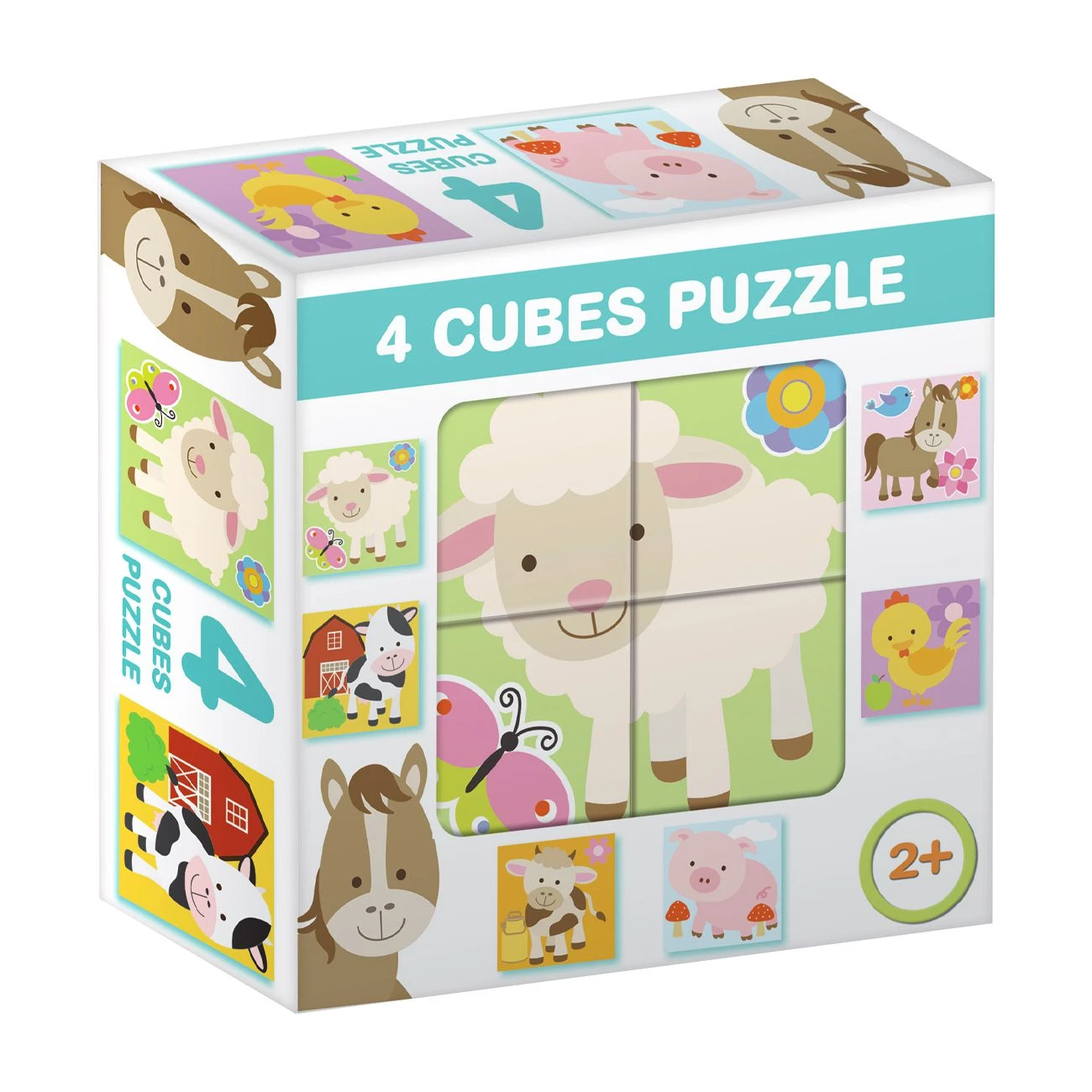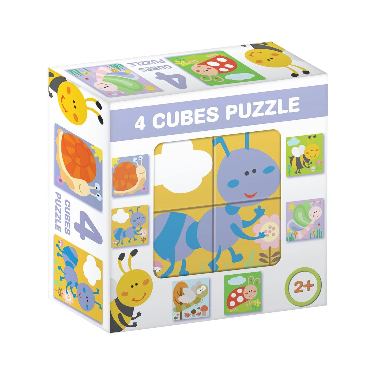Sestavljanka kocke, 4 plastične kocke velikosti 4x4x4 cm, s katerimi lahko sestavite 6 različnih sličic. Fina in natančna obdelava, primerna za najmlajše. Razvijanje moči opazovanja in koordinacije. Na voljo 8 motivov. Priporočeno za otroke od 2 leta dalje.