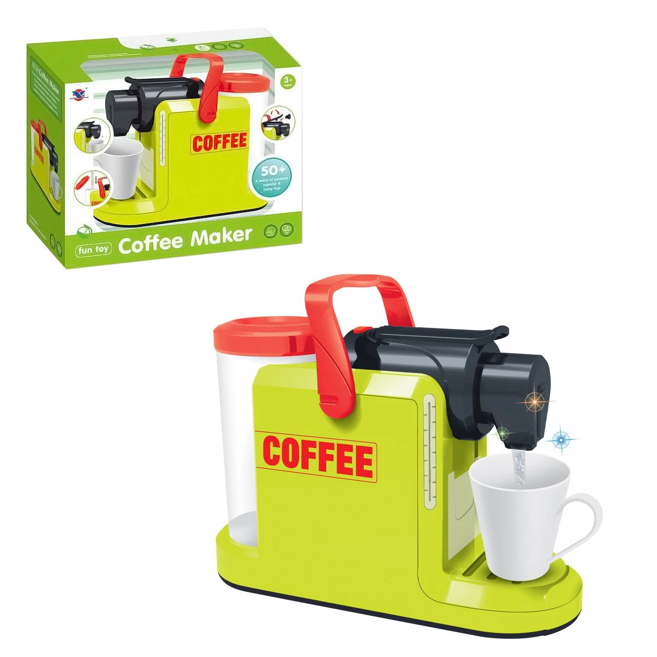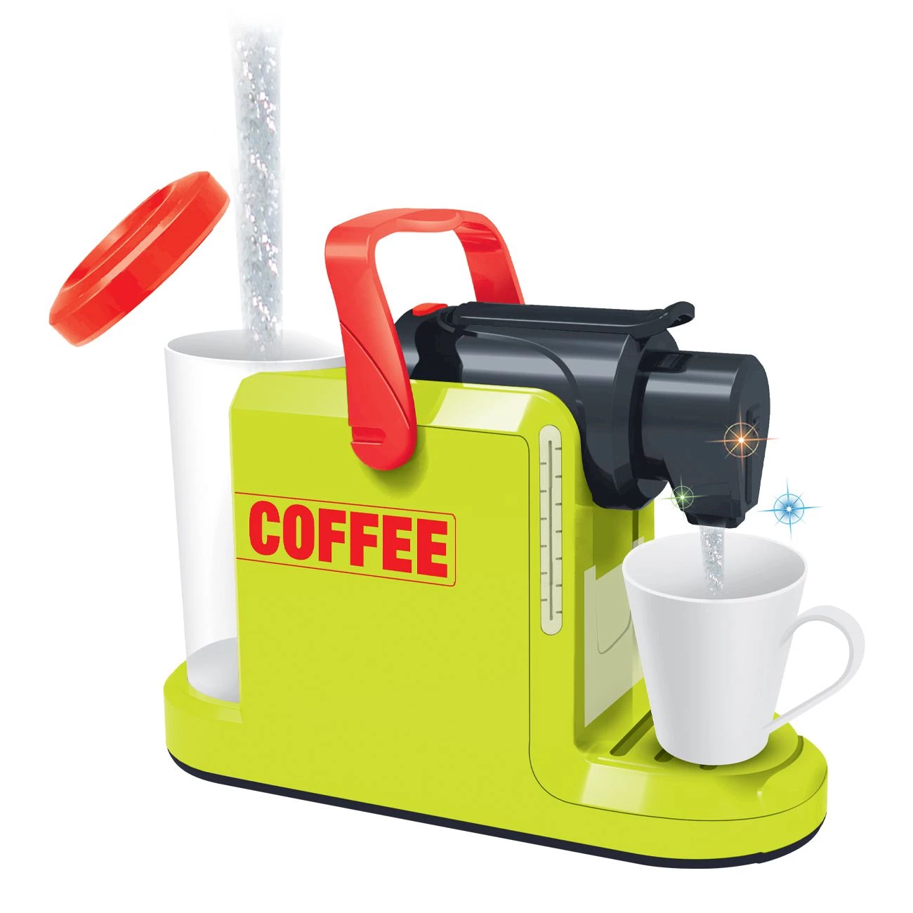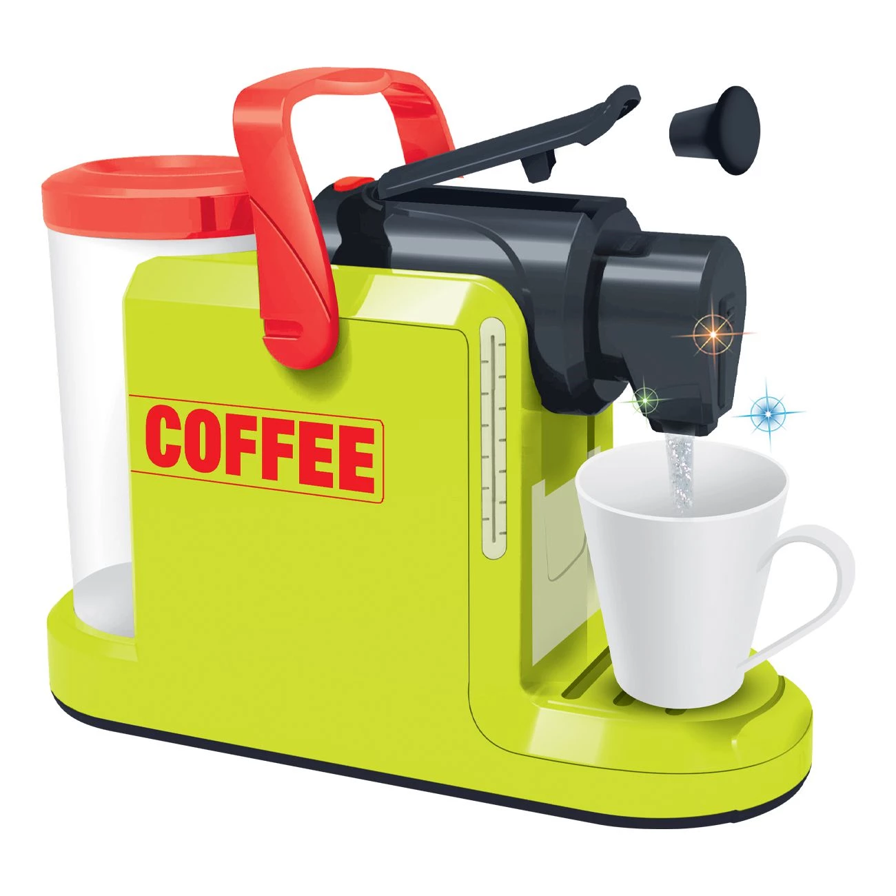Elektronski aparat za kavo zabava otroke med pripravo kave. Aparat ima različne svetlobne in zvočne efekte.