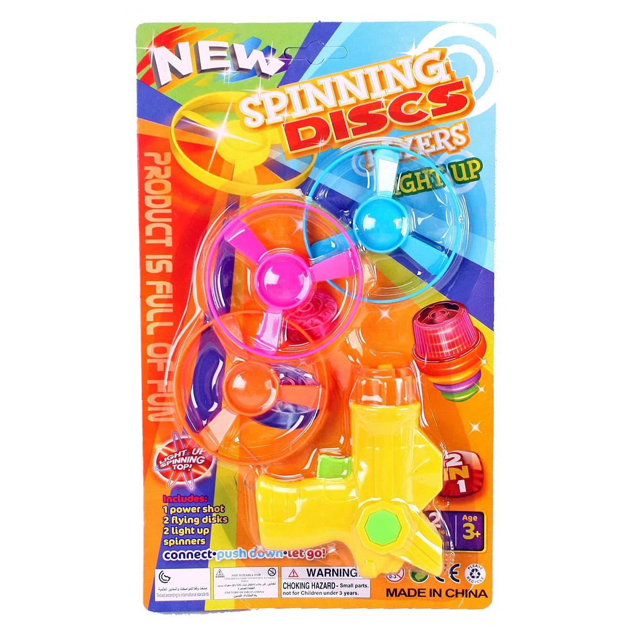 Pištola plastična z veternicami in vretčim svetlečim diskom Set vsebuje: Izstreljevalec vel 10x9x3 ,vrteči svetleči disk 6x5x4 cm in 4 vetrnice vel. 7,5 cm. Na izstreljevalec nataknite veternico ali vrteči disk in izstrelite. Primerno za otroke od 3 let dalje.