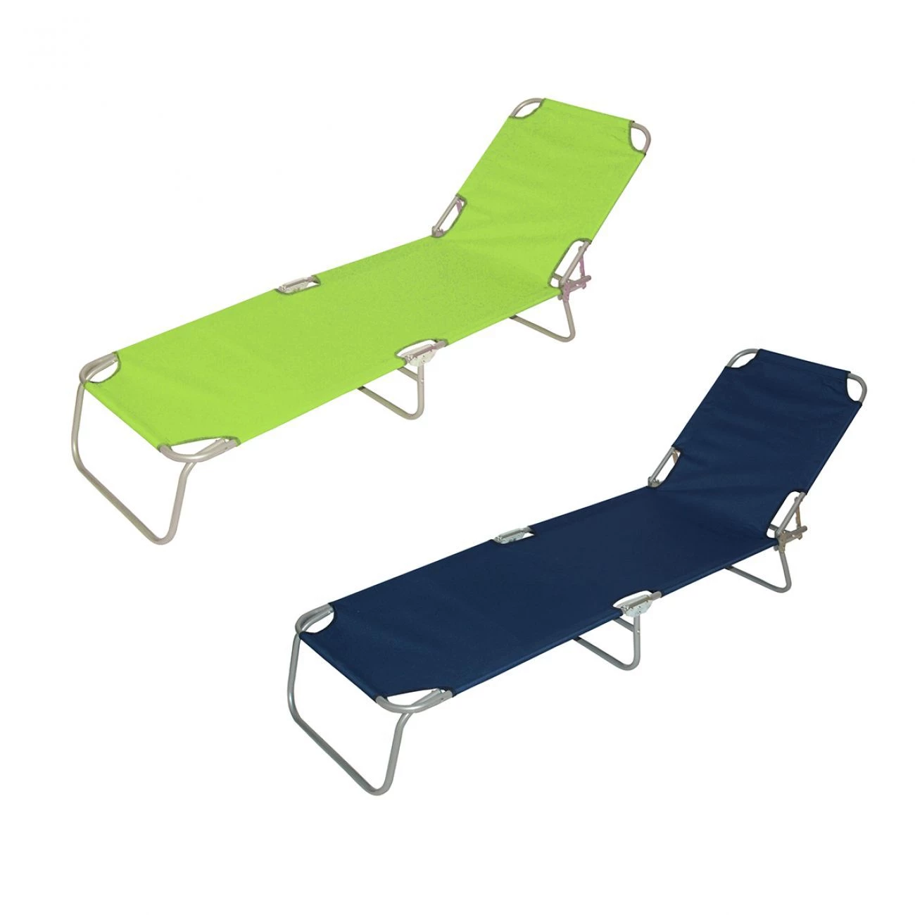 Zložljiv ležalnik 24x188x55 cm, konstrukcija iz jeklenih cevi, premera 18 mm, material: poliester 600 D, nosilnost do 120 kg, nastavljiv nagib vzglavja, všite so ročke za lažje prenašanje.