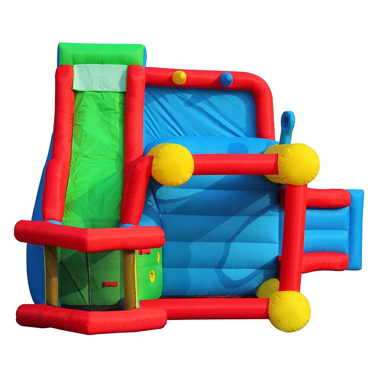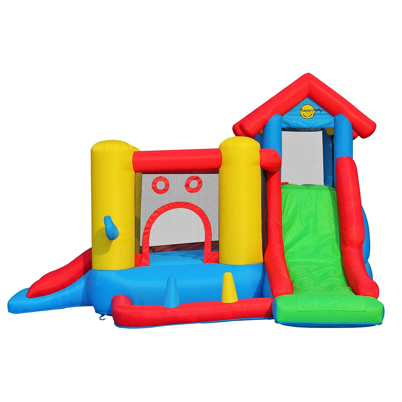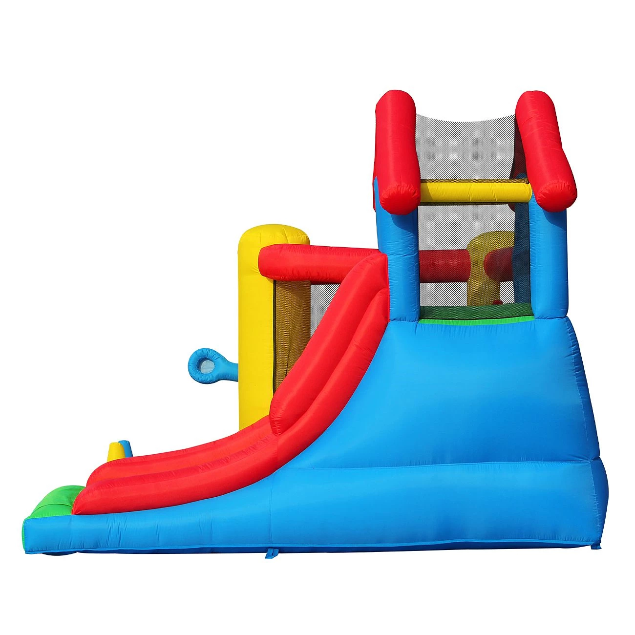 Napihljiva hišica, igralnica, skakalnica z dvema toboganoma bazenom in drugimi dodatki. Igralnica je za igro pripravljena v nekaj minutah, saj ima priloženo močan ventilator Po igri se ventilator enostavno izklopi in igralo se samo sprazni. Velikost 300 cm x 360 cm x 235 cm. Primerno za največ 5 otrok skupne teže 130kg starosti od 3 let dalje in višine od 90 cm do 150 cm. V kompletu ventilator, klini, igralo, set za popravilo, vreča za shranjevanje, navodila.