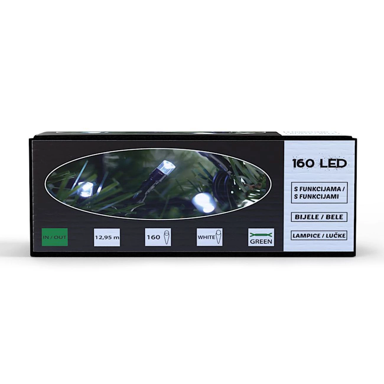 160 LED lučk, razmak med lučkami je 5 cm, zelen kabel, 24V, 8 funkcij. Namenjeno notranji in zunanji uporabi.
