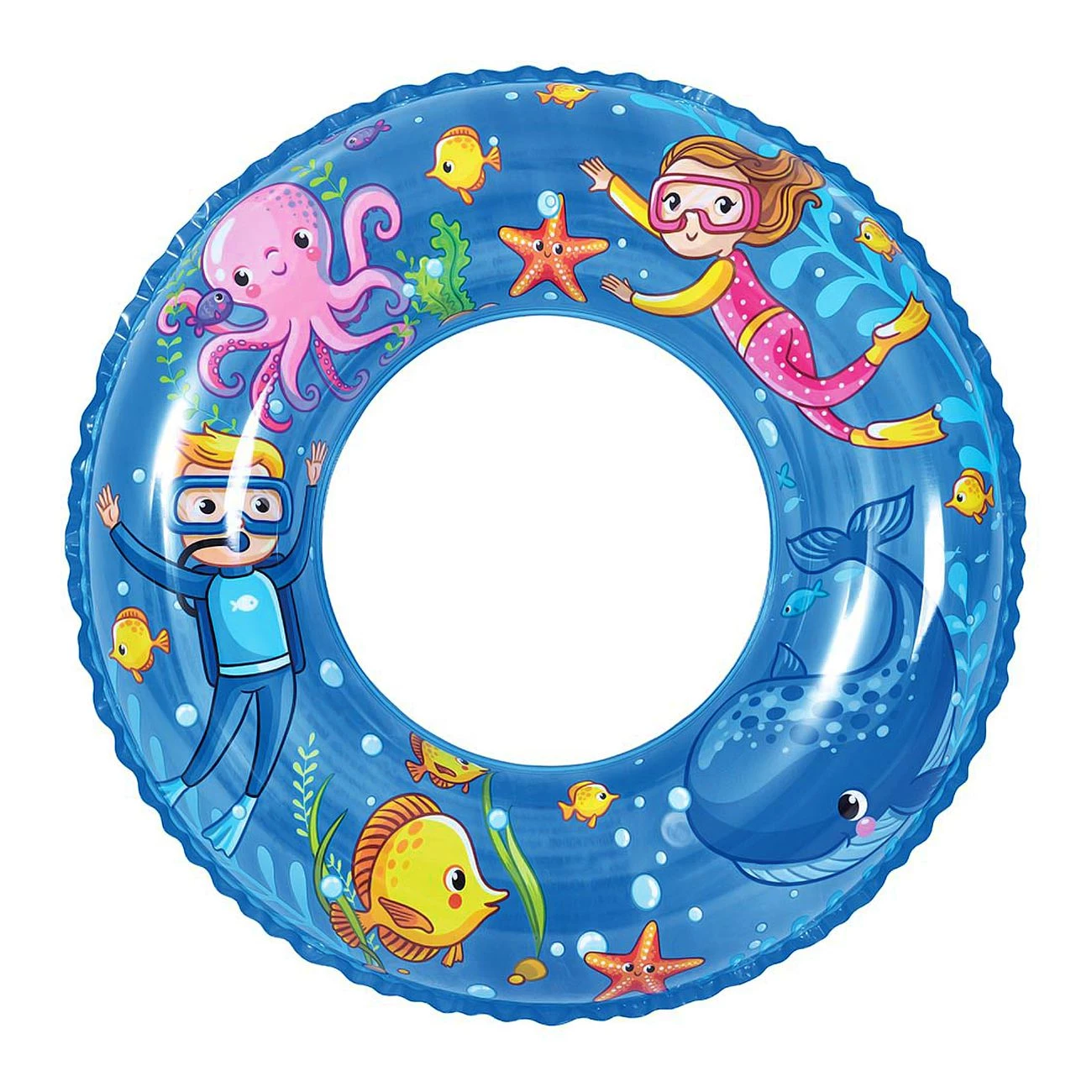 Obroč za vodo, premera 60 cm, morski motiv. Primerno za otroke 4-8 let. Dve vrsti (rumeni in modri).