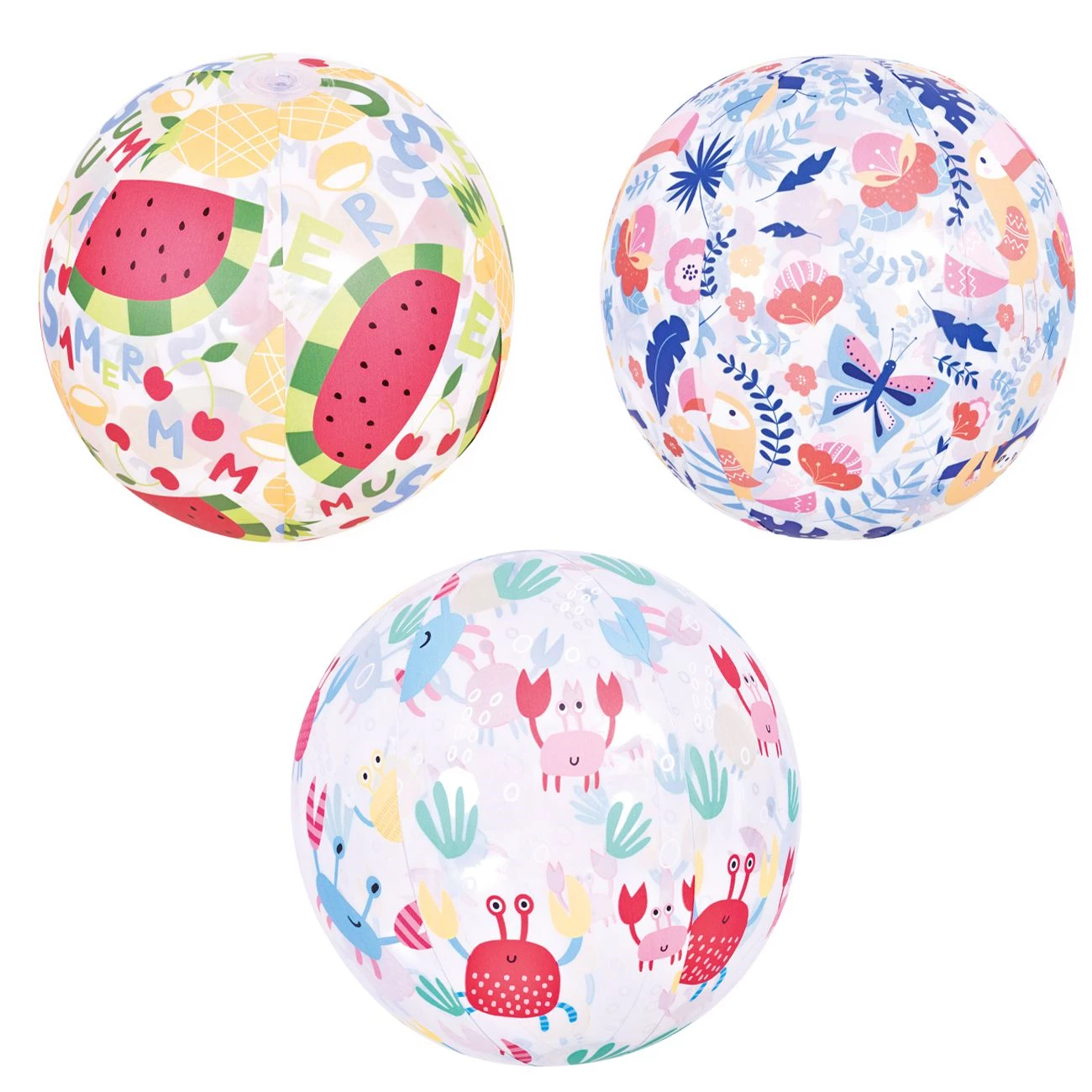 Žoga za napihovanje z vzorci, 3 sort (motiv: rakci, metuljčki, lubenice) Premer: 50 cm