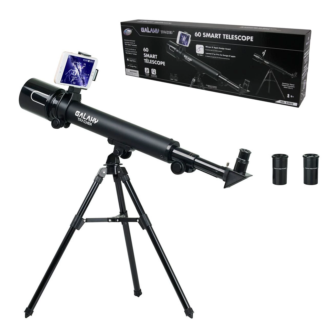 Pravi astronomski teleskop 30/60 ima močno aluminjasto trinožno stojalo. Uporabi svoj pametni telefon in ga pritrdi na teleskop. Telefon te bo, s posebno aplikacijo popeljal do kateregakoli ozvezdja boš želel. Premer objektiva 50 mm. Vsebuje teleskop, trinožno stojalo 39 cm, držalo pametnega telefona (telefon ni vključen), okular, ogledalo in navodila