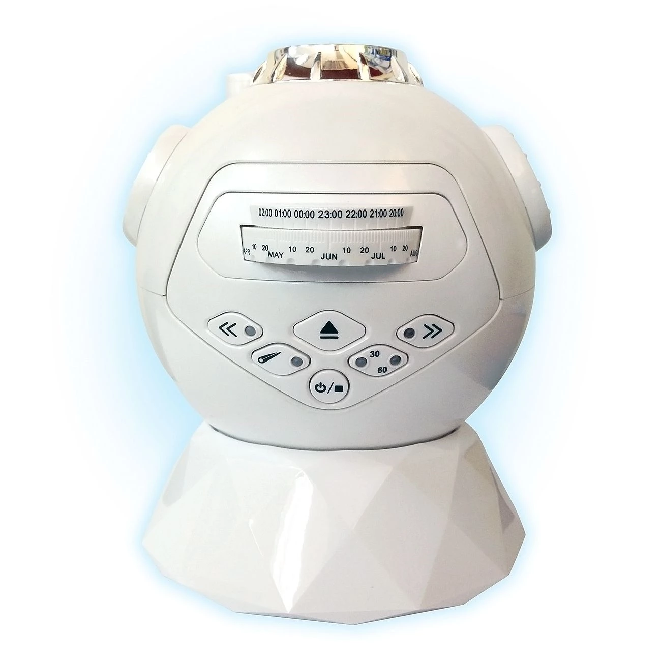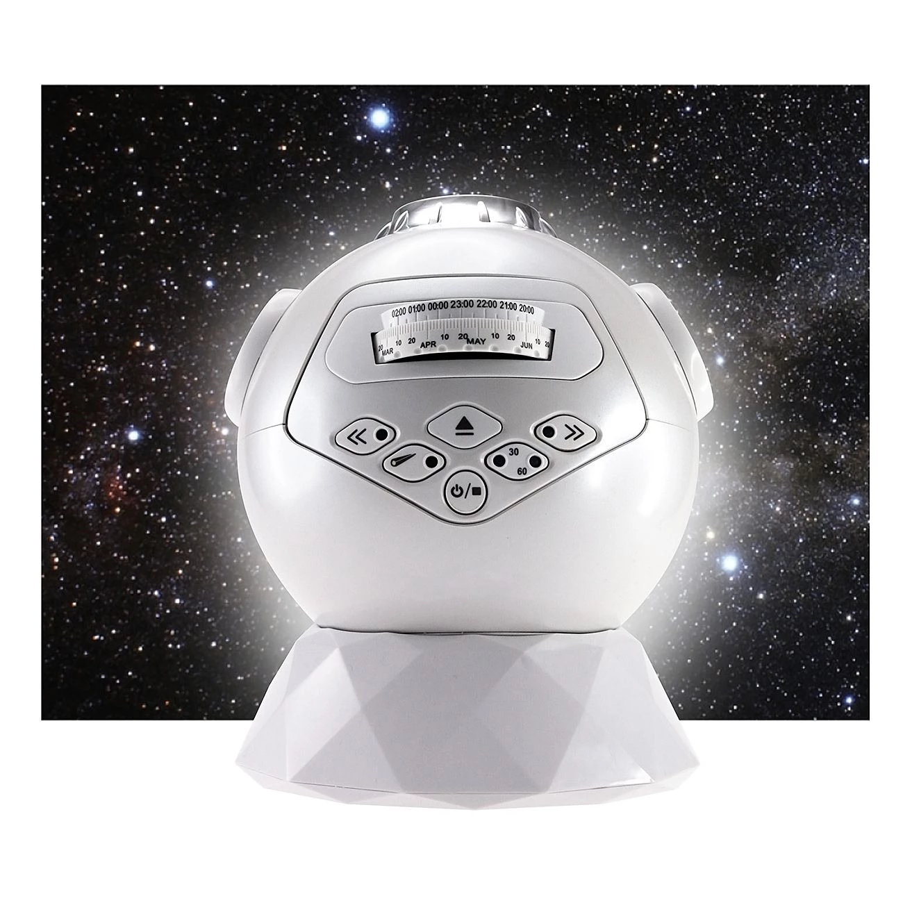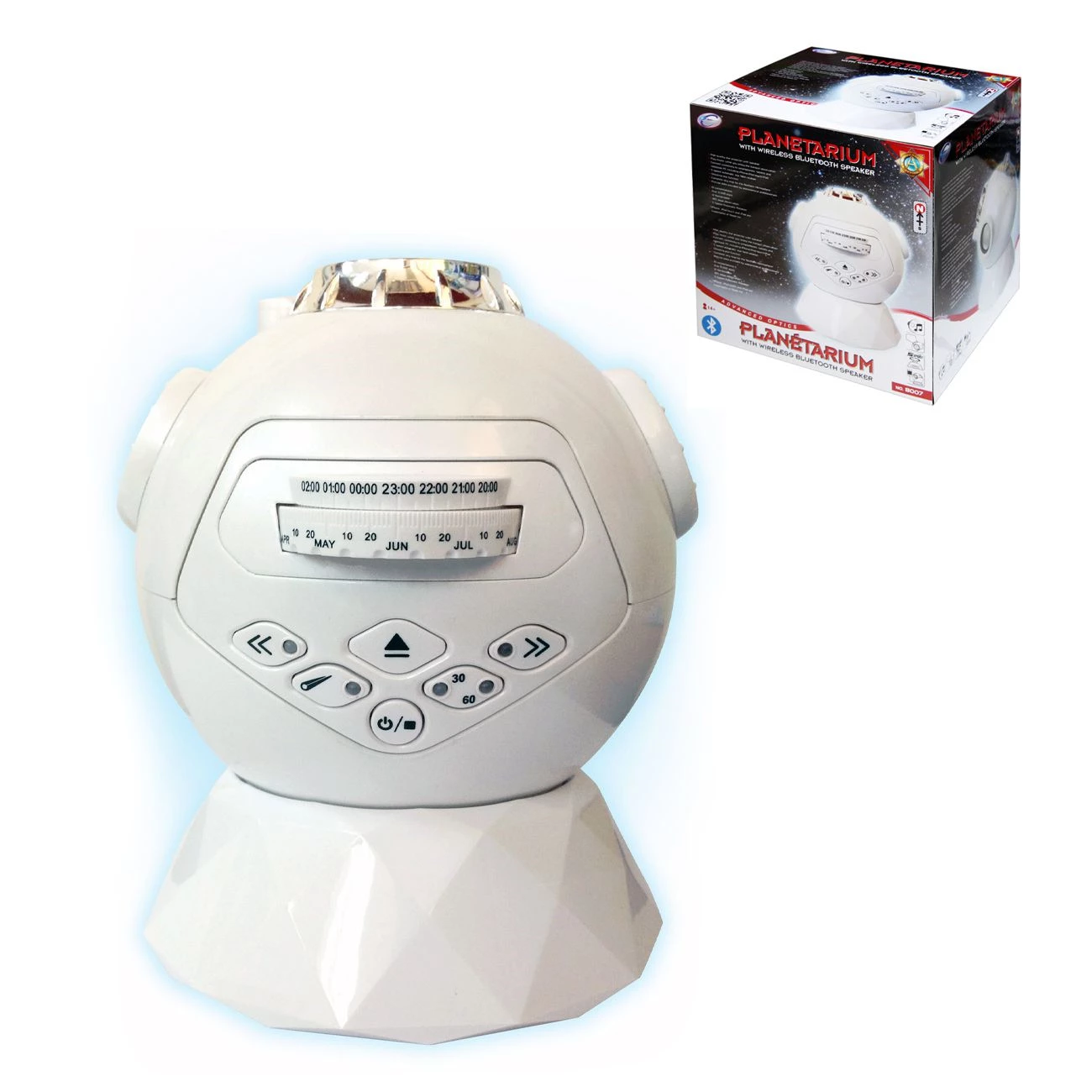 Projektor z brezžičnim bluetooth zvočnikom Zvočnik je združljiv z vsemi pametnimi telefoni Projicira zvezdnato nebo ob določenem času.Prikazuje 61 ozvezdij in 8000 zvezd 5 hitrosti rotaksije, prikaz padajoče zvezde vsako minuto. Za delovanje so potrebne baterije 3 x AA