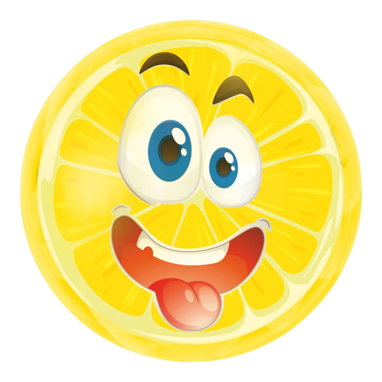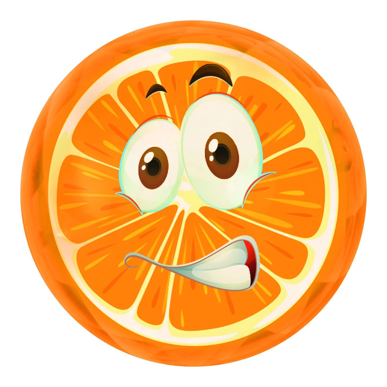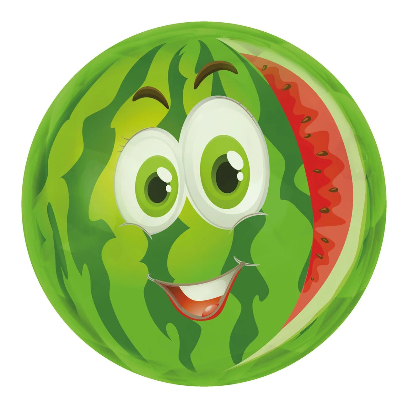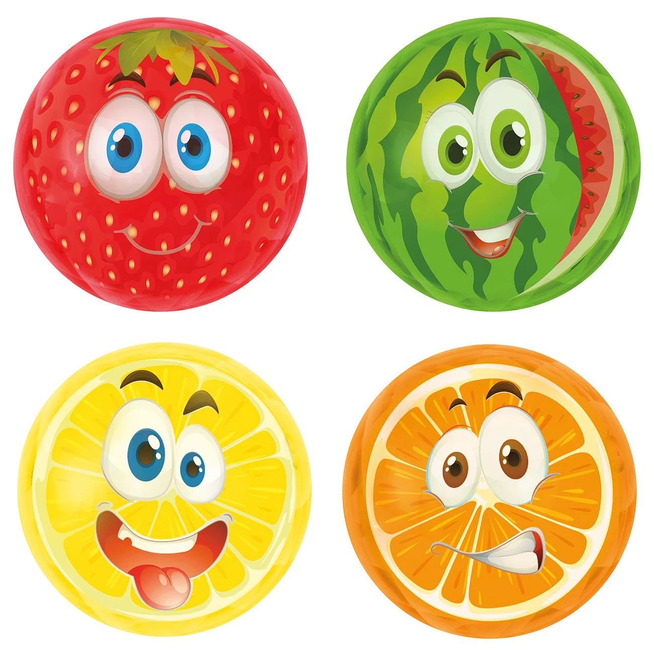 Žoga premera 10cm z lučko. Poslikana z motivi sadja.