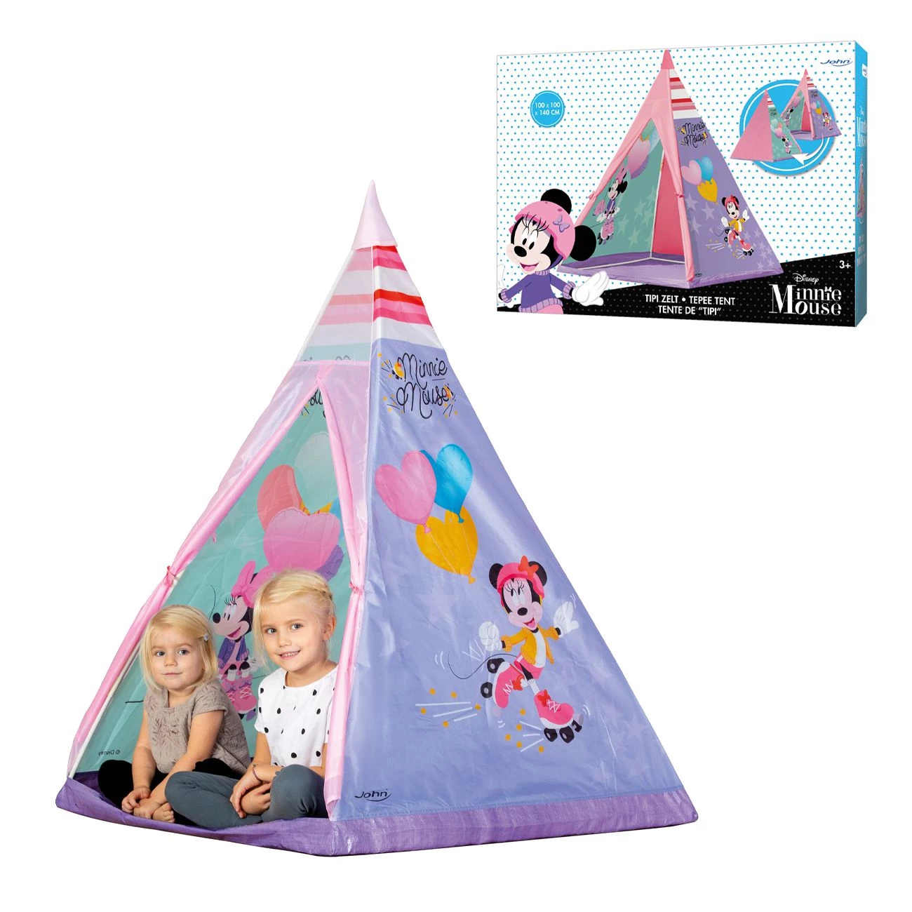 Šotor otroški za igro. Dimenzije 120 x 120 x 140 cm z motivom Minnie. Hitro in enostavno za postavitev. Priložene pvc palice za postavitev šotora.