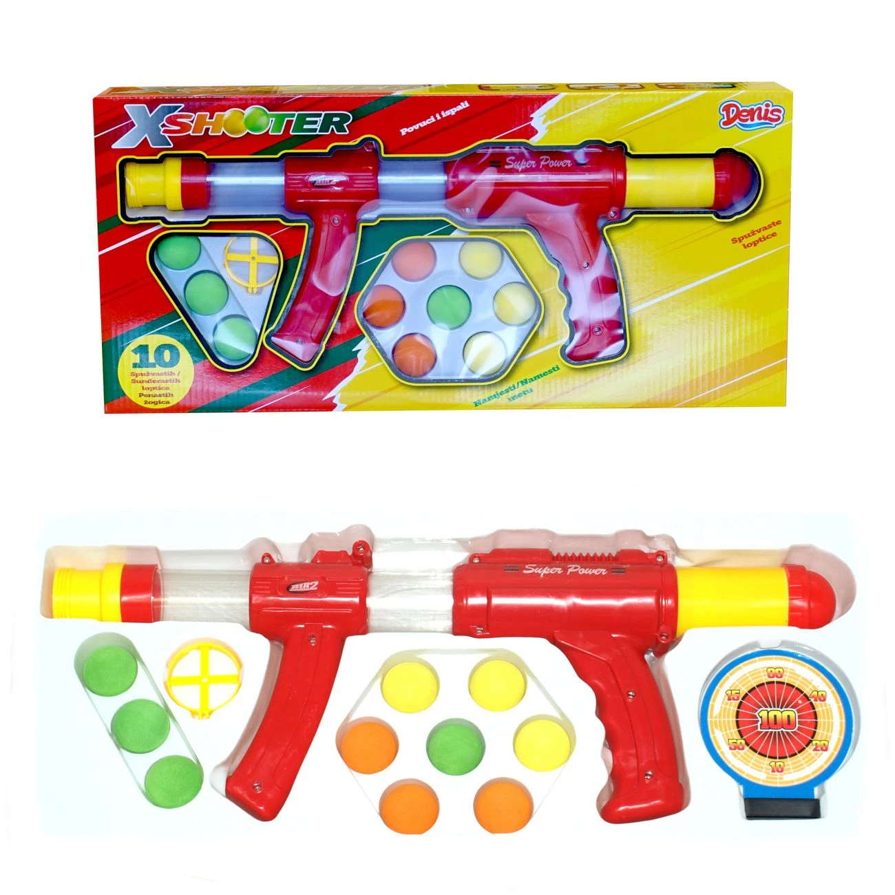 Malo heca mora biti. Puška velikosti 43 cm in 10 kom mehkih barvnih žogic, ki jih vstaviš v puško je super zadeva za žurko. Primerno za otroke po 5 letu starosti.