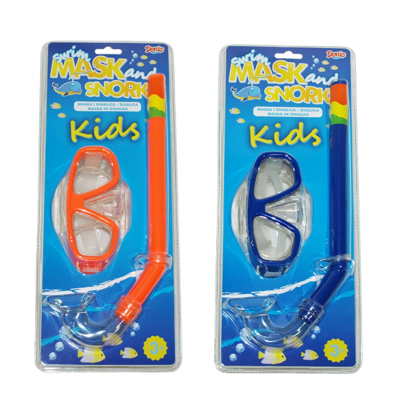 Otroška maska in dihalka za potapljanje. Material izdelave: pvc, guma. Dimenzije: maska 8x14 cm, dihalka 32 cm. V 3 barvah: modra, rumena in oranžna.