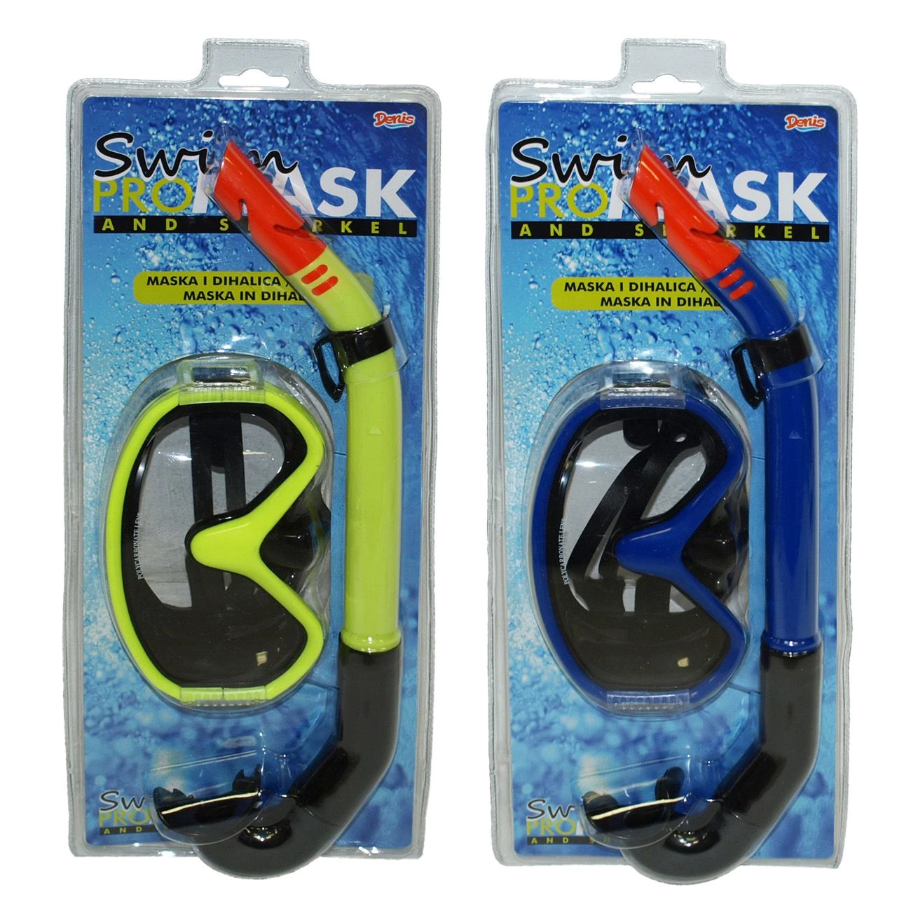 Maska in dihalka za potapljanje. Material izdelave: pvc, guma, polikarbonatna leča in guma. Dimenzije: maska 11 x 18 cm, dihalka 40 cm.