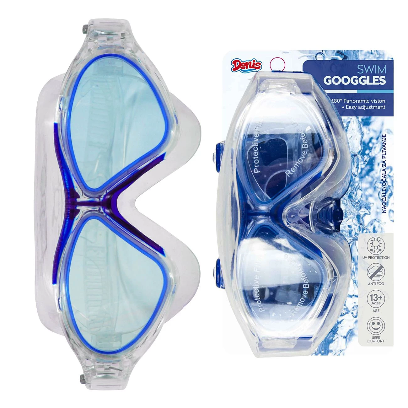 Očala za plavanje. UV zaščita, širok kot gledanja, brez zamegljenosti, nastavljiv trak. Predvideno za starost 13+.