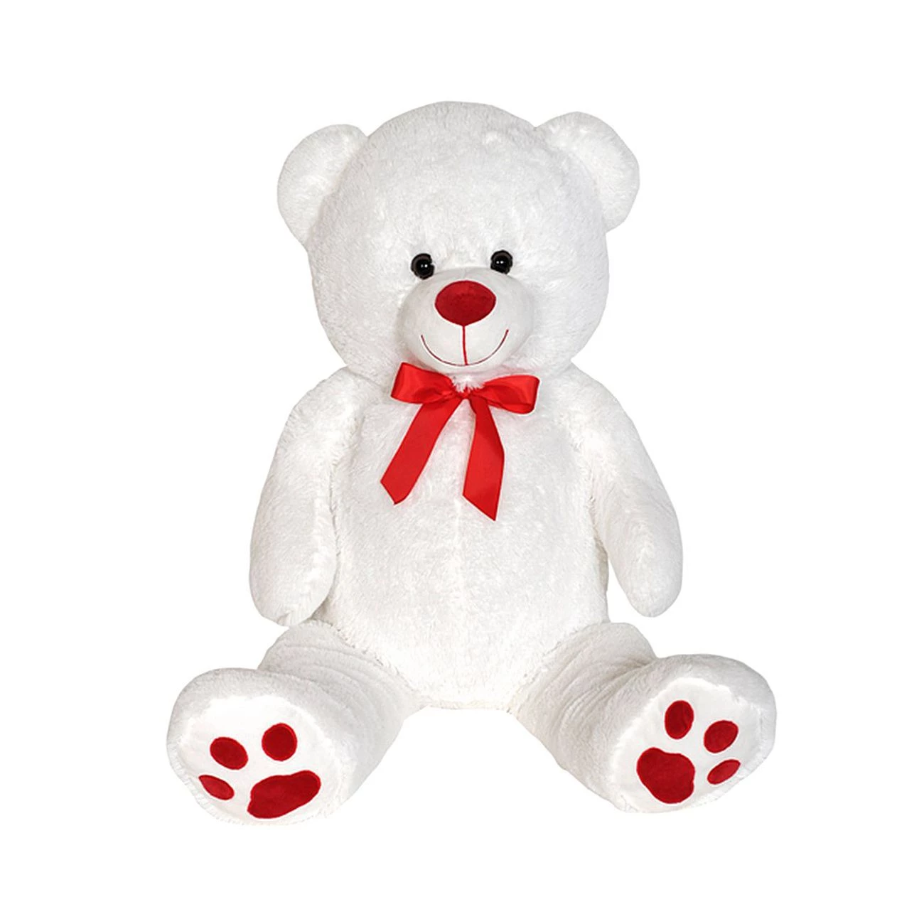 Plišasti beli medo z rdečo pentljo, velikosti 100 cm. Izdelan iz izjemno mehkega in kvalitetnega pliša. Primerno za vse starosti