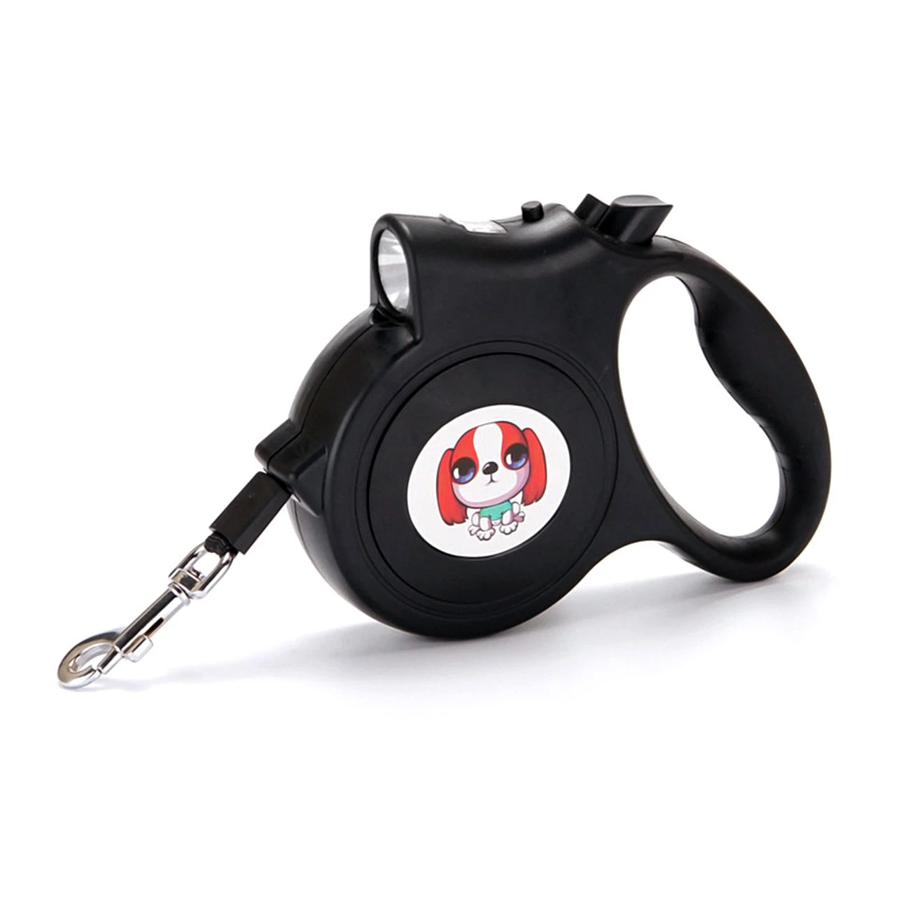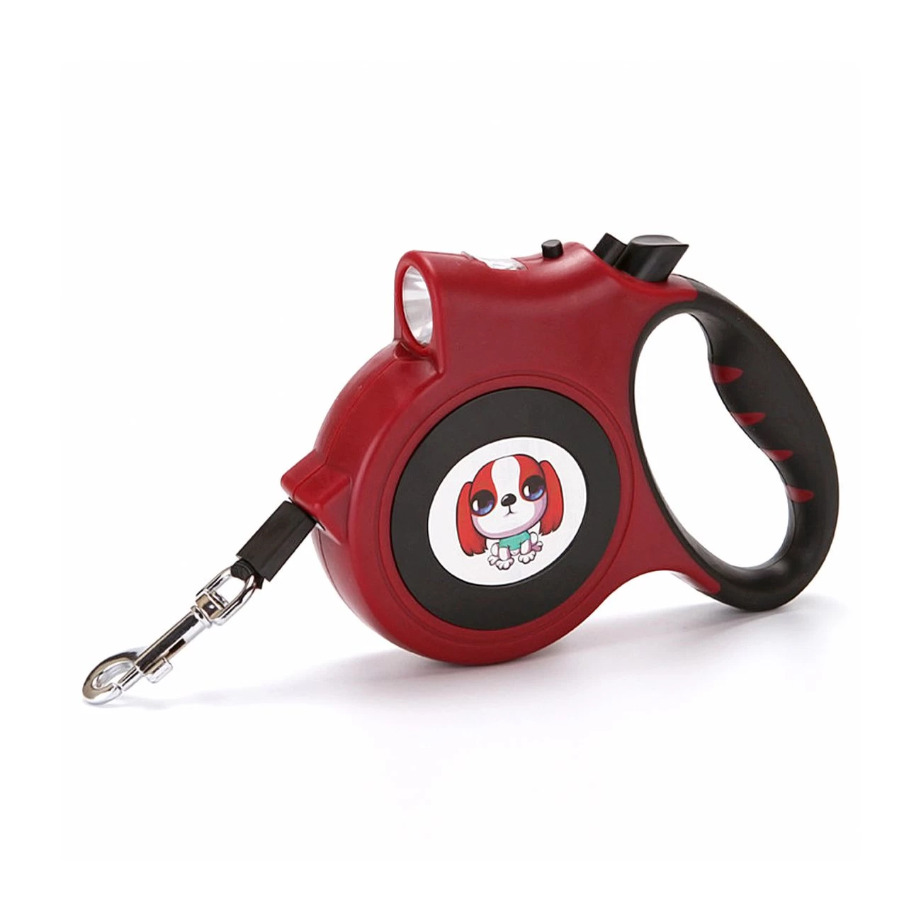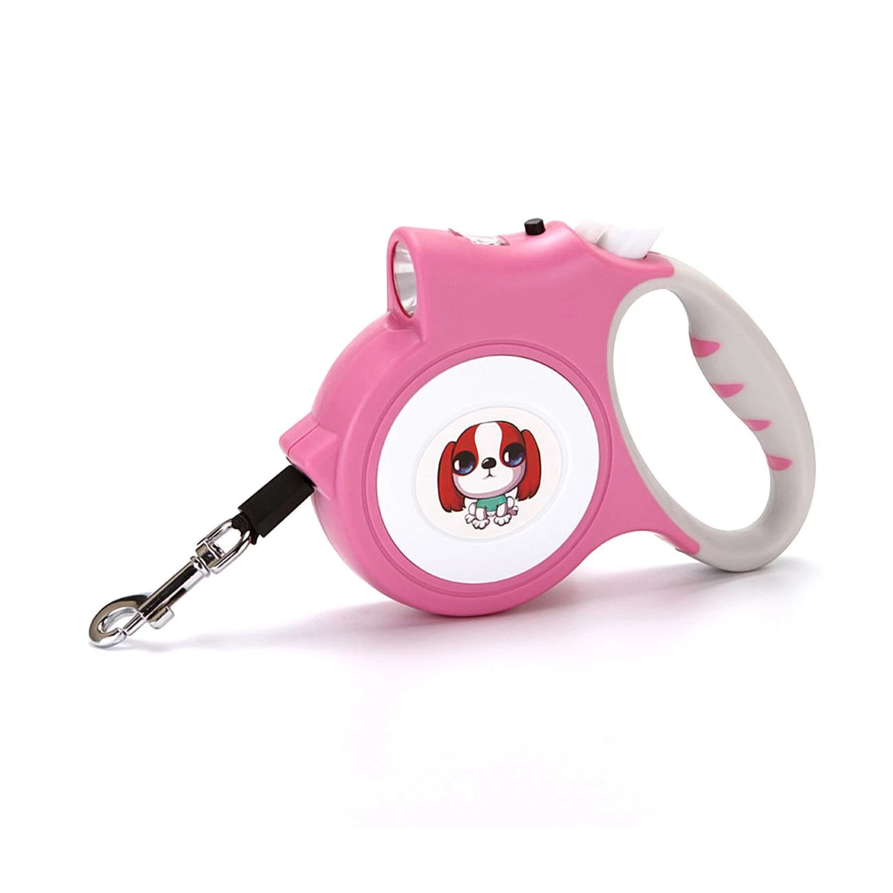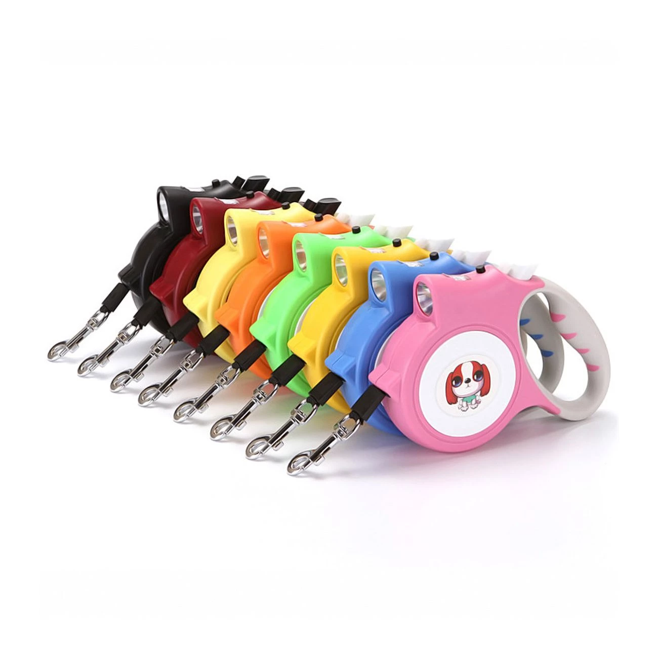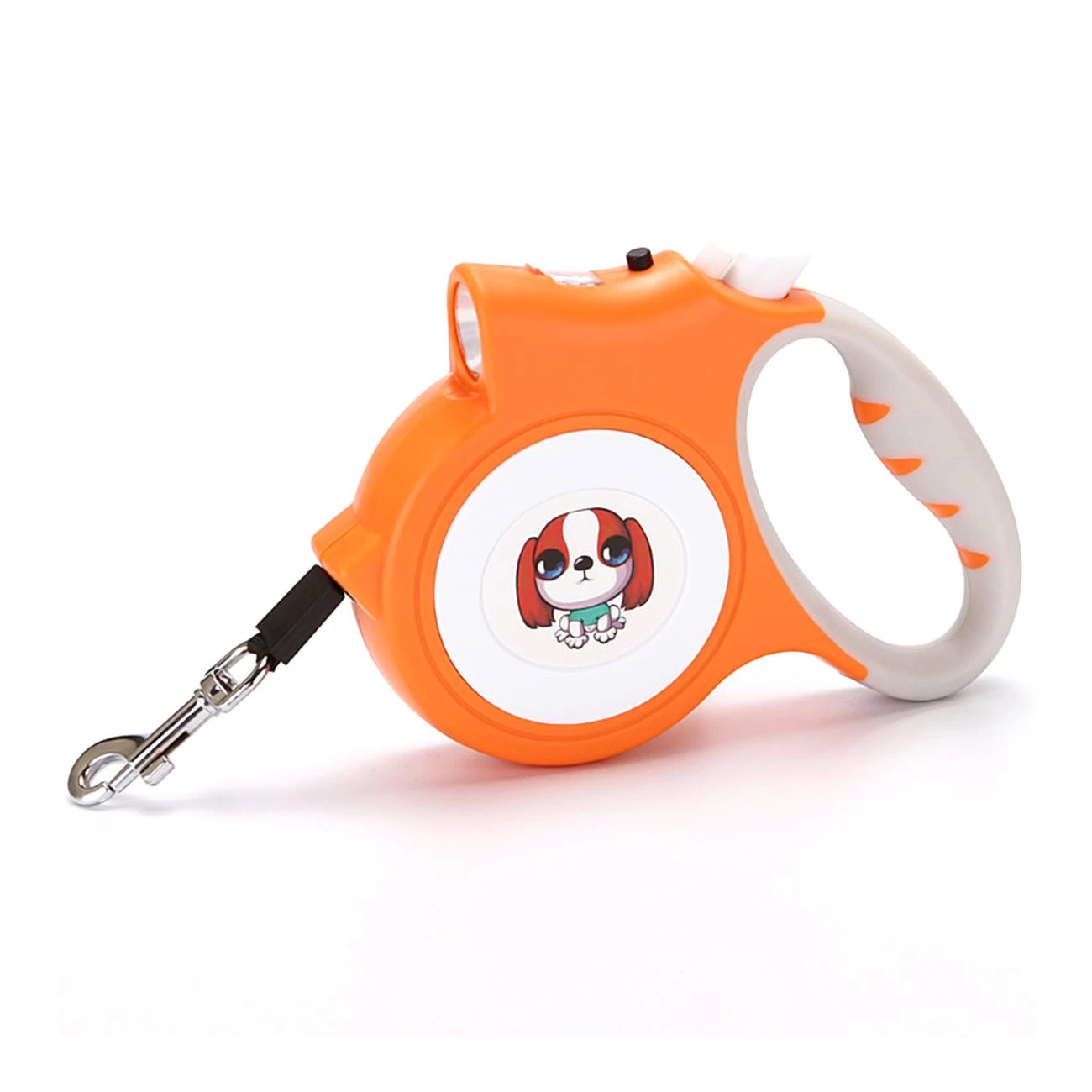 Flexi povodec za pse. Na povodcu je vgrajena LED svetilka. Dolžina izvlečnega povodca 5 metrov Na voljo v rumeni, rjavi, oranžni, modri, črni in roza barvi.